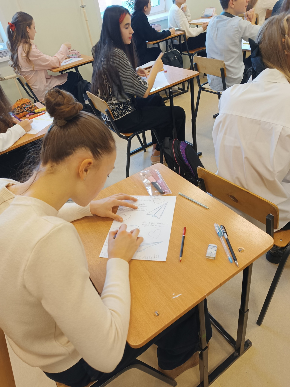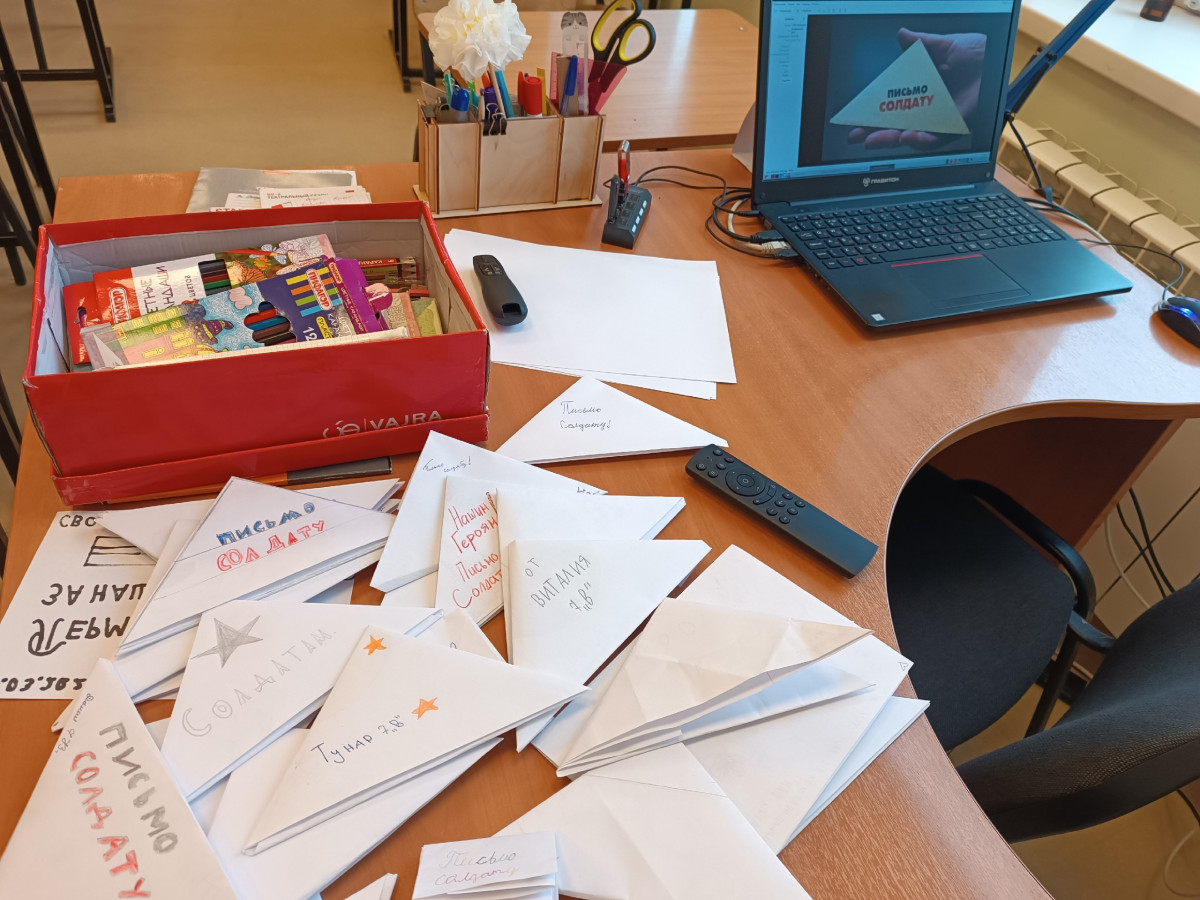 По моей инициативе школьники написали весточки солдатам СВО. Классный руководитель приготовила бумагу и карандаши, раздала ребятам.