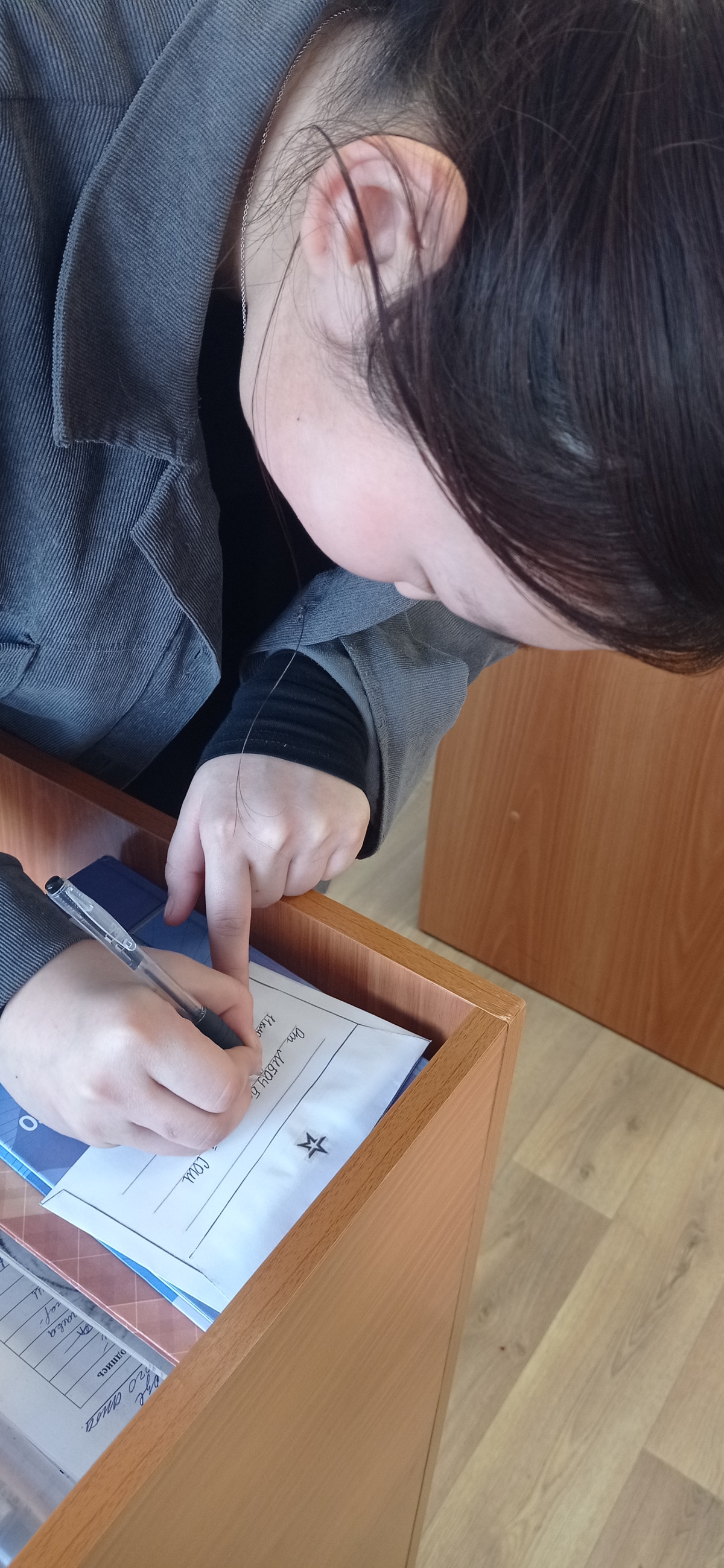 В данном киноуроке приняли 10 человек, это обучающиеся 10-11 классов. Фильм "Письма", качество Целомудрие. После просмотра фильма старшеклассники 10-11 классои отвечали на вопросы: 1. Ваше мнение и впечатление по данному фильму? 2. Перечислите положительные и отрицательные качества по данному фильму. 3. О чем и о ком было показано в фильме? После обсуждения и ответов на вопросы, старшеклассники сделали вывод, что в данное наше время, необходимо связать с СВО, где сейчас воюют и сражаются наши деды, папы, братья, дяди, друзья, защищают нашу Родину. Оценив все ответы и обсуждения, старшеклассники самостоятельно придумали, что сделать. Староста класса после отчиталась о проделанной работе самими обучающимися. Отчет их заключался в том, что ученики написали письма, открытки, собрали посылки для наших военнослужащих. Также старшеклассники наставники над 3 классом, тоже предложили ученикам 3 класса и помогли также собрать посылки для войнов СВО. В данной практике было помощь родителей в сборе посылок.