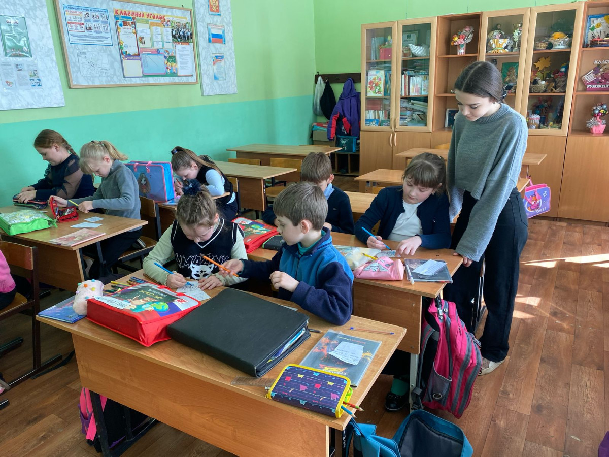 В качестве социальной практики ученики 8А класса провели внеклассное занятие по труду во 2А классе. Ребята сделали подарочки: раскрасили открытки и написали письма своему однокласснику, который уже год находится на лечении в больнице. Ребята писали что скучают, желали скорейшего выздоровления однокласснику и возвращения в школу.