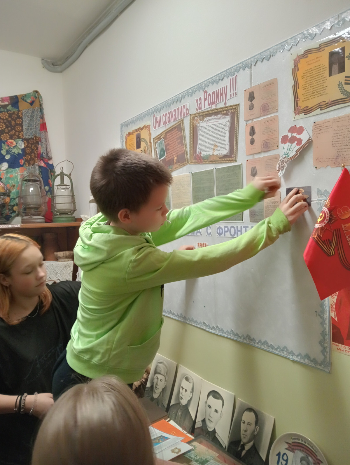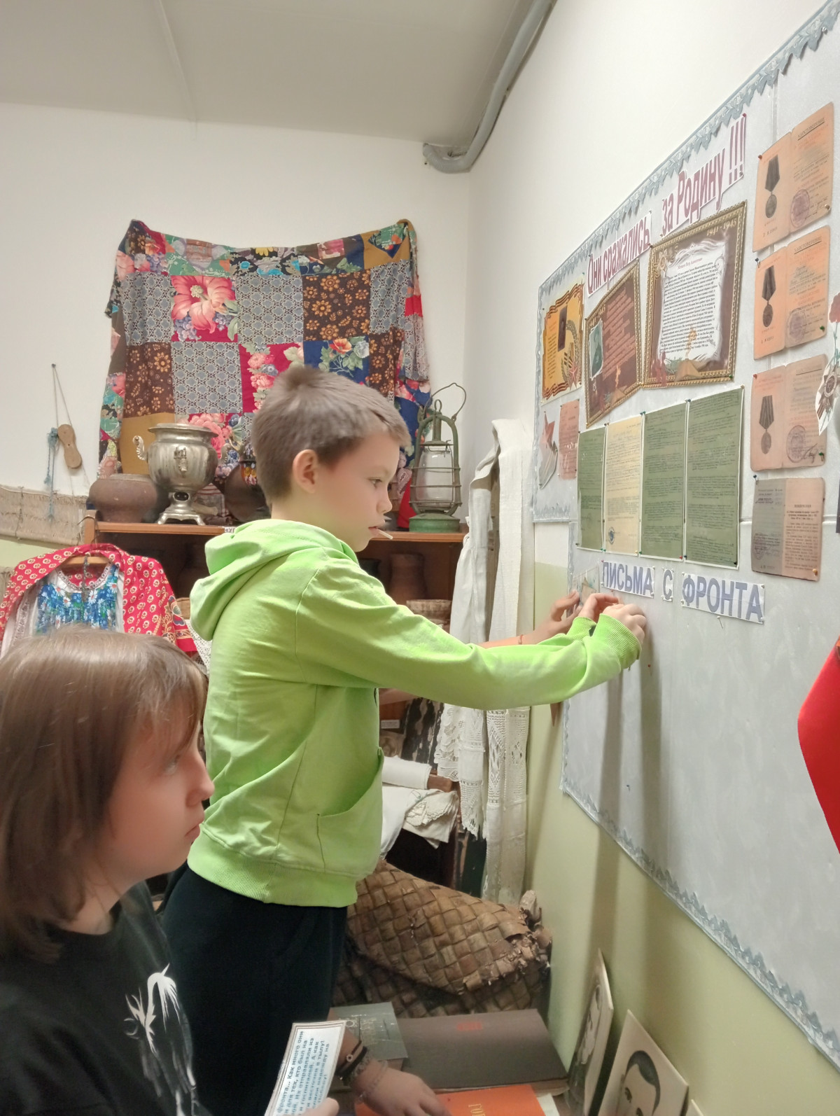 Руководитель школьного музея предложил ребятам принять участие в оформлении музейной экспозиции "Они сражались за Родину!". Ребята ответственно подошли к выполнению этой работы: составили план оформления экспозиции, собрали необходимый материал, оформили стенд "Письма с фронта".