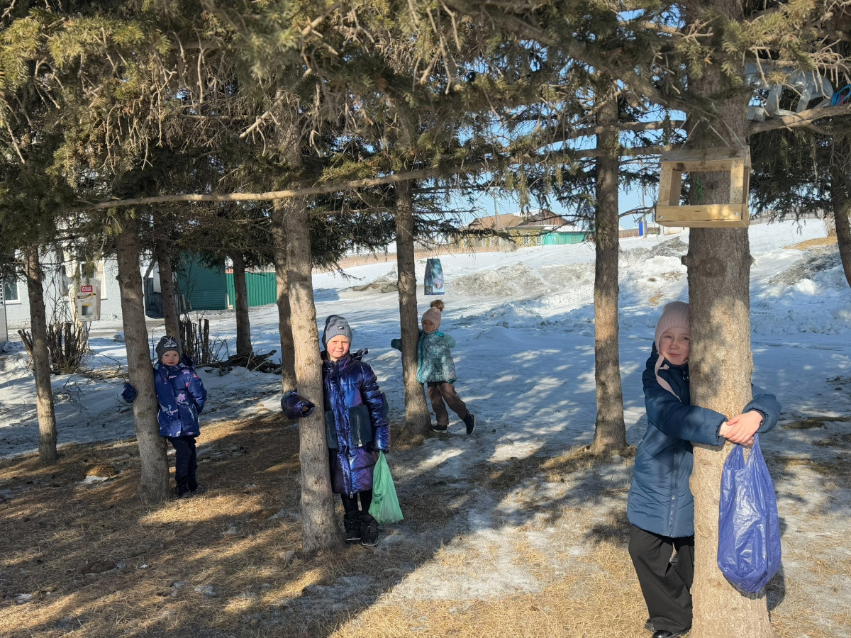Кормушки были развешаны на территории школы и в личных домах детей.