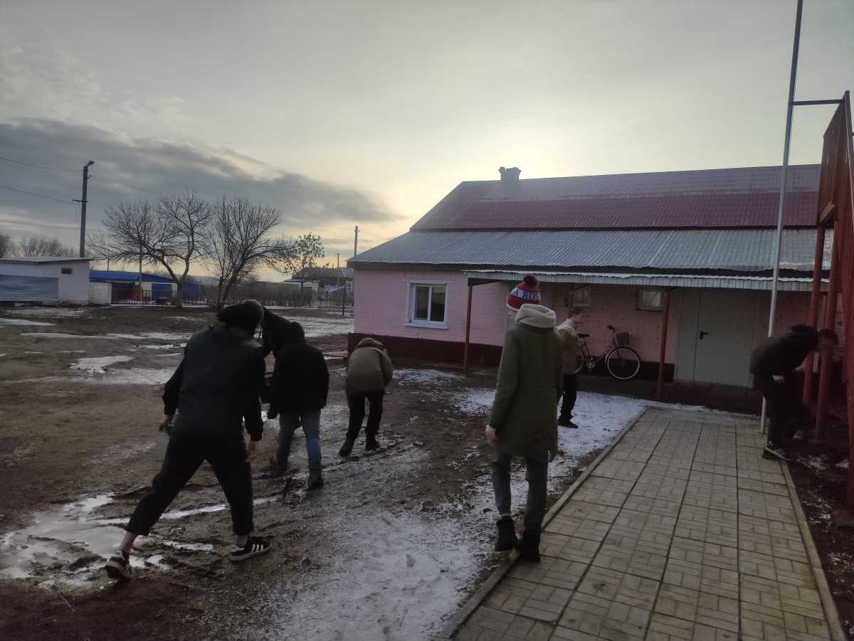 Ребята нашего 10 класса посмотрев фильм"Город крылатого коня"воодушевились поступком главного героя. Они решили убрать територию нашего любимого интерната от мелкого мусара который остался под снегом. Пришла весна стало тепло снег растаил и весь мусор на поверхности. Вместе мы сила и пусть нас только семеро .И ребята вотагой дружно бросились уберать любимый двор. Надо любить и беречь то место где ты растешь и где твои корни!