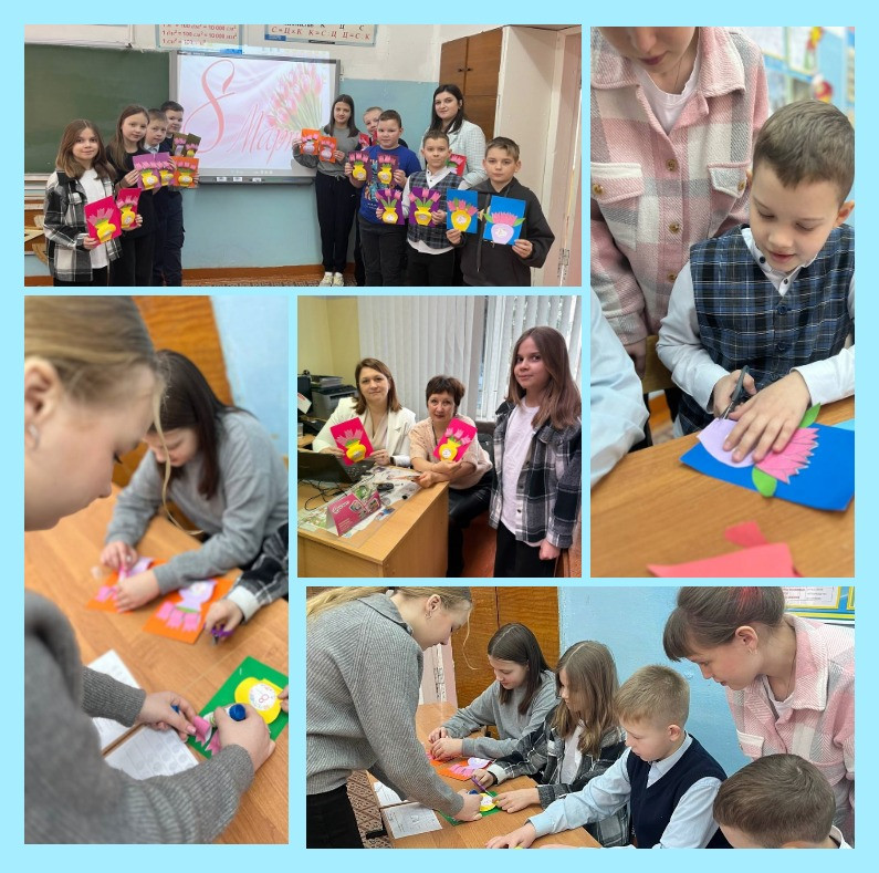 В канун Международного женского дня в нашей школе традиционно проводится день дублера. Ребята тщательно подготовились и в качестве дублеров - учителей начальных классов - провели киноуроки, где посмотрели фильм «Песня ветра», обсудили фильм с учениками начальной школы. Вышли к мысли, что дружелюбие помогает во всем. На вопрос: «Что же можно сделать дружно?» - ученики начальной школы предложили сделать поздравительные открытки учителям.