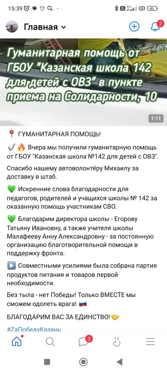 Вся собранная гуманитарная помощь будет передана нашим друзьям-волонтерам благотворительной организации ZA-Победу.Казань.