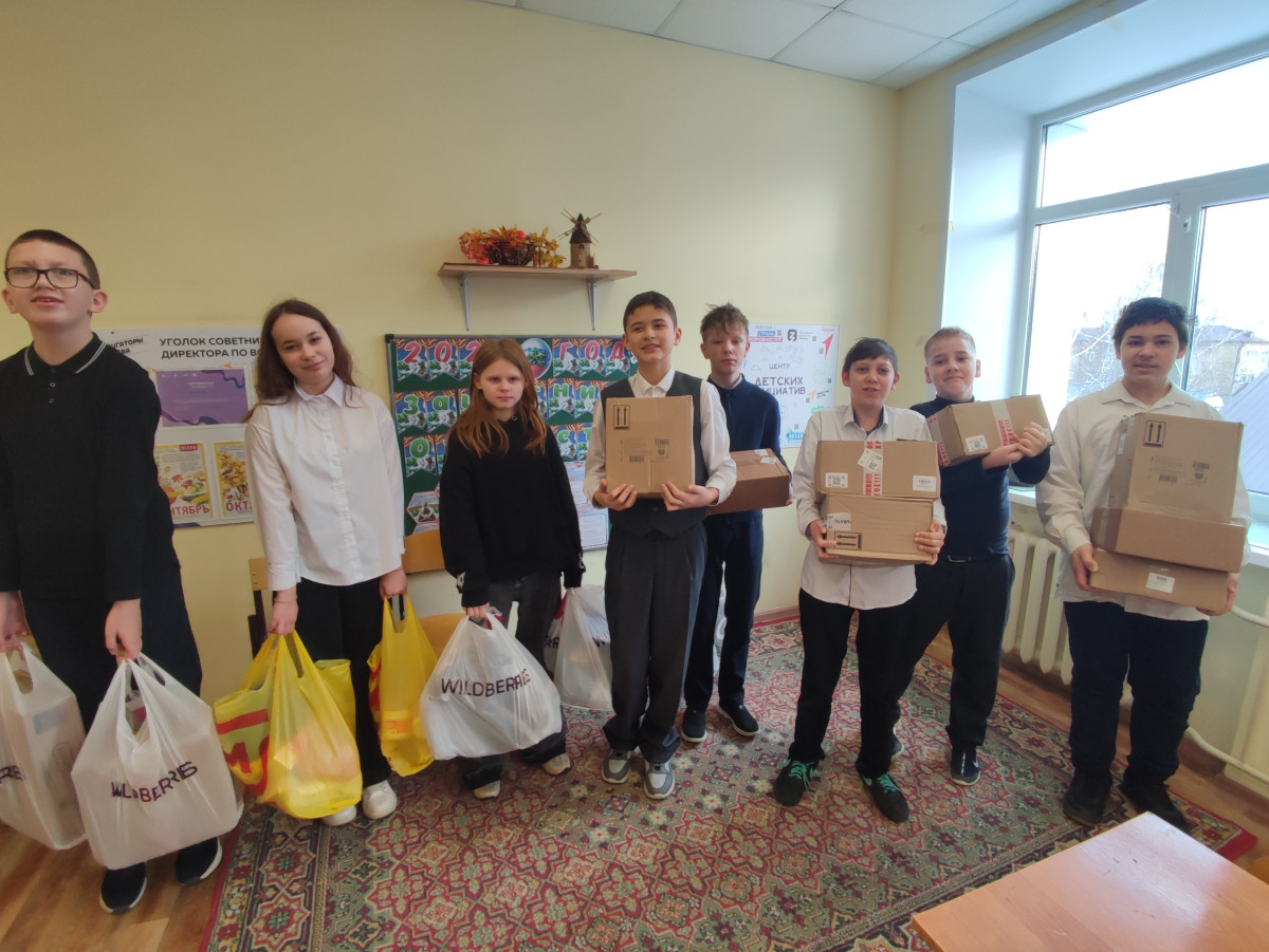 После активного обсуждения фильма обучающиеся нашей школы решили сделать коллективное дело – собрать гуманитарную помощь нашим бойцам на СВО (продукты питания и предметы личной гигиены). Вместе со своими родителями они принесли в школу: тарелки, стаканы, вилки, ложки одноразовые, чай, кофе, вкусняшки к чаю, пену для бритья, станки для бритья, носки, влажные салфетки, мешки для мусора, тушёнку, консервы и многое другое. К сбору активно присоединились педагоги нашей школы.