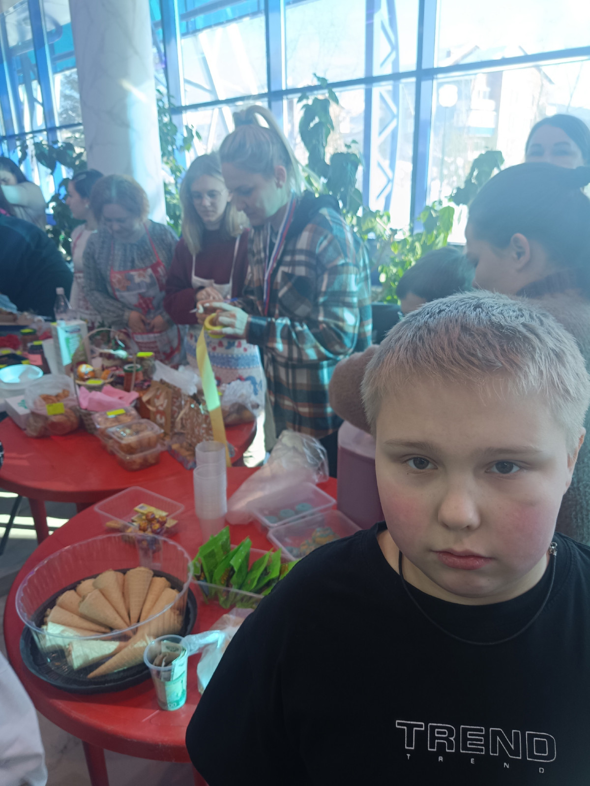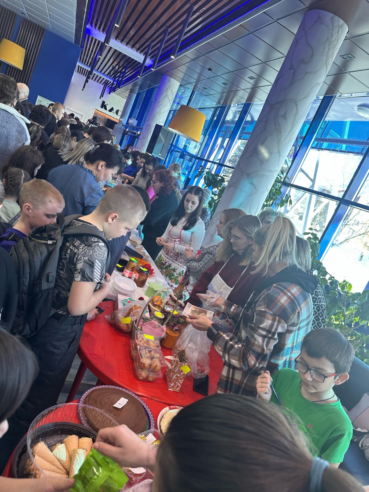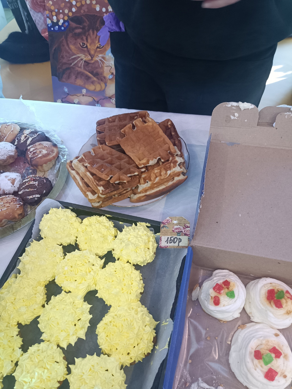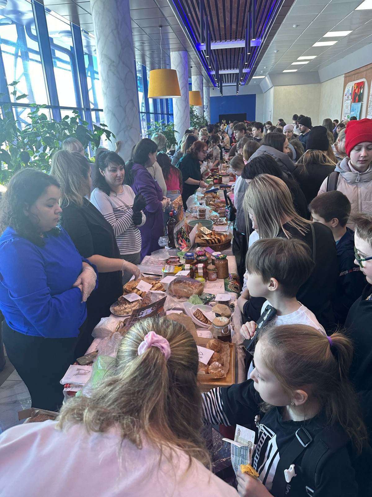 Совместно с классным руководителем ребята решили принять участие в муниципальной благотворительной ярмарке. Школьники при помощи родителей представили на продажу различную выпечку. Все вырученные средства будут направлены на помощь бойцам СВО.
