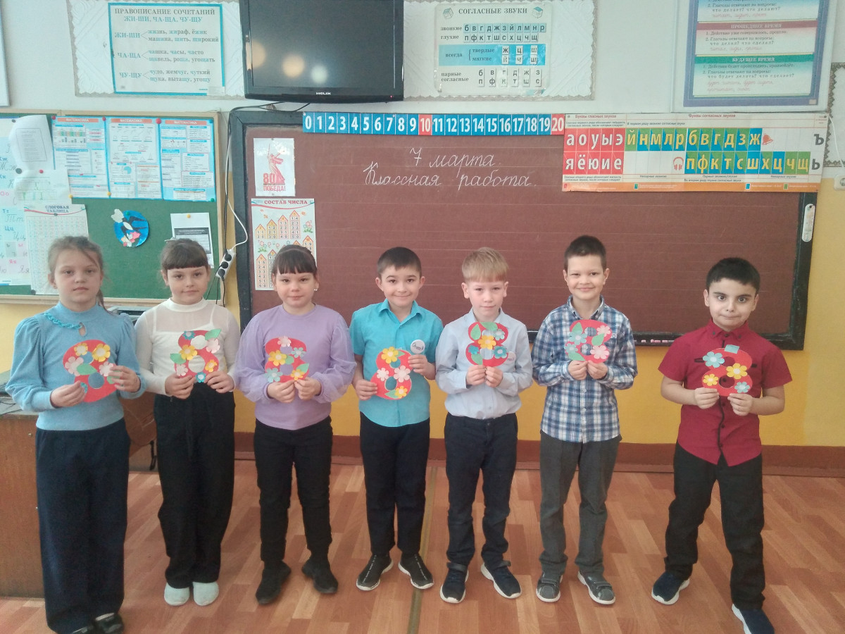 После просмотра кинофильма,учащиеся решили проявить внимание к одиноким жительницам посёлка старшего поколения.Совместно с учителем было решено сделать поздравительные открытки к празднику 8 Марта.Ребята были удовлетворены результатами своей работы и получили слова благодарности от женщин посёлка.