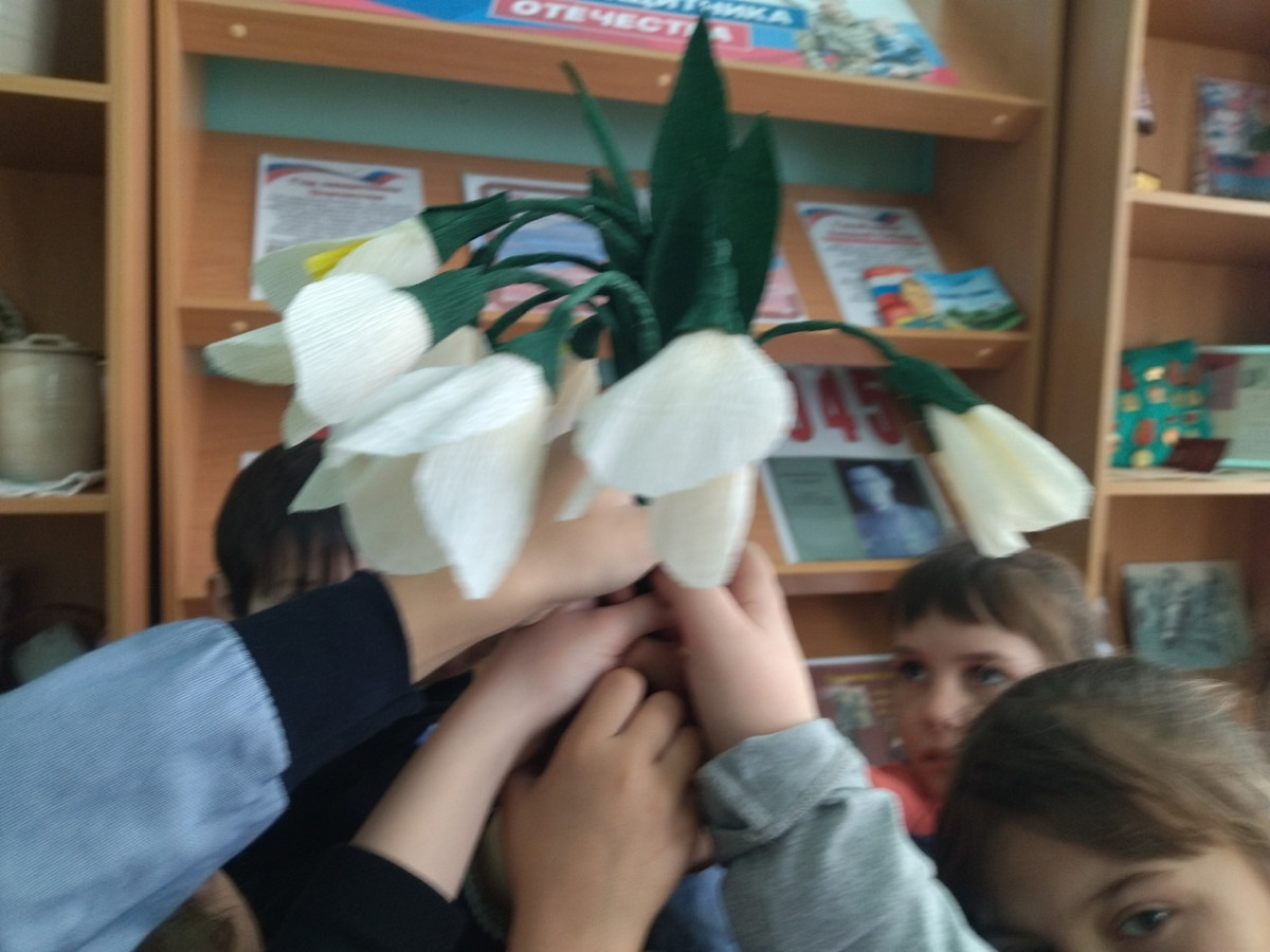 Учащиеся решили изготовить из бумаги красивые первоцветы и порадовать подарком свою одноклассницу с инвалидностью, которая не сможет сделать такую поделку. Получился красивый букет. Девочка была очень рада вниманию детей.