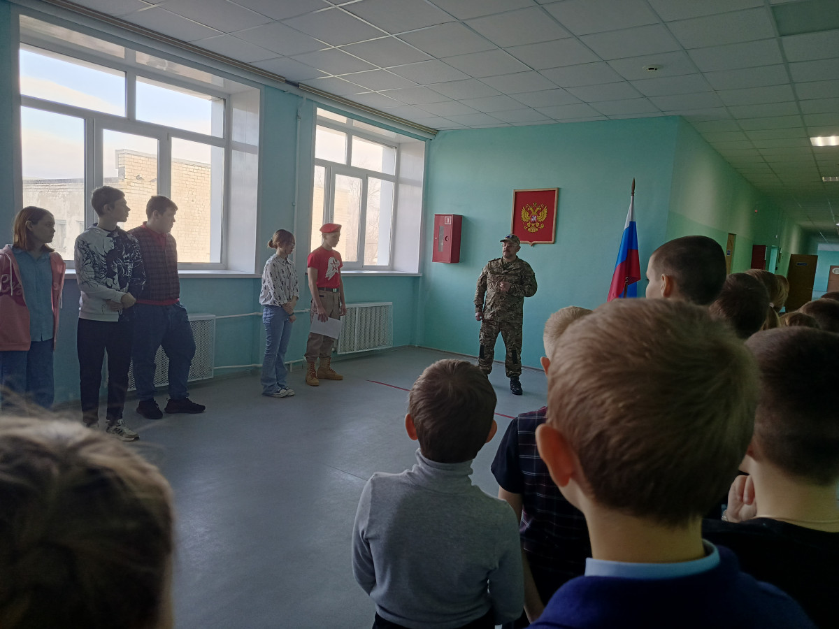 Посмотрев фильм «Крепость», ребята обсудили просмотренный фильм и предложили, пригласить в школу участника СВО Челнакова С.А. Встреча проходила в формате живой беседы. Во время встречи Сергей Александрович рассказал о трудных боевых ситуациях, о мужестве сослуживцев, о патриотическом духе и поддержке со стороны простых граждан, учащихся школ. Обращаясь к детям, он отметил: «Вы, в отличие от Луганских и Донецких детей, живете в мирных условиях, не слышите и не видите, как разрываются снаряды, как они уносят жизни мирных людей. Поэтому цените этот мир, эту тишину и сделайте то, что в ваших силах. А в ваших силах - хорошо учиться, быть дисциплинированным, стать настоящим патриотом и будущими защитниками своей Родины».