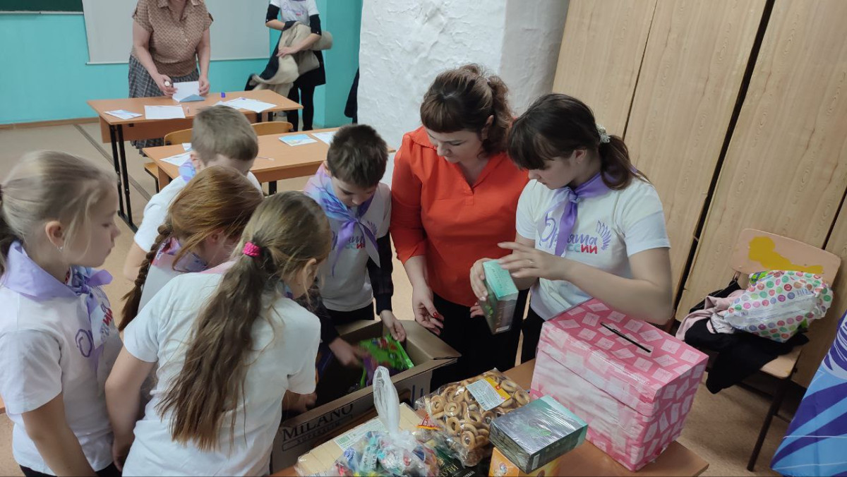 4. В ходе проведения мероприятия, ребятам помогали ученики других классов, учитель, специалист сельской администрации ( с пункта приема сбора помощи ей сразу удалось отправить наши письма в зону СВО с одним из участников операции, который возращался из отпуска в свою часть).