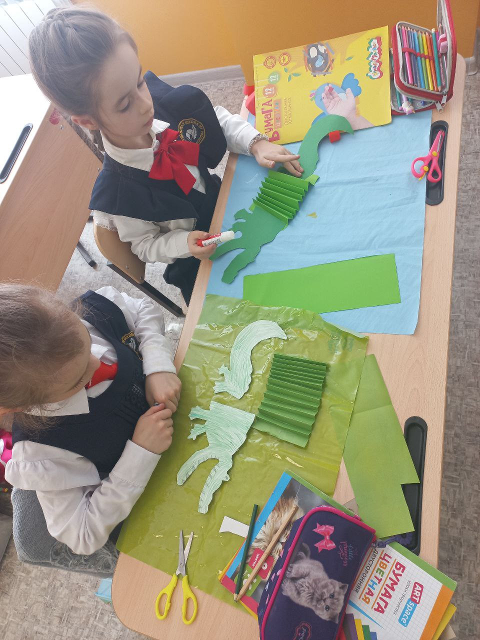 После просмотра фильма ребята приняли участие в обсуждении темы что такое воображение и как оно помогает людям в жизни. Детям очень понравился воображаемый друг главной героини фильма, поэтому каждый захотел иметь своего фантастического друга. Мы с ребятами решили сделать волшебных крокодилов. В конце учащиеся захотели пофантазировать и придумали имя своему другу.