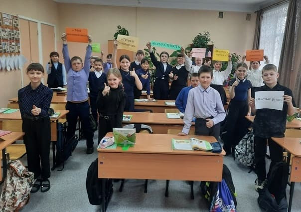По завершении недели дети решили рассказать об Акции первоклассникам. Группа ребят подготовила инсценировку стихотворения «Всё, меняюсь!» и выступила перед маленькими детьми. Первоклассники очень внимательно слушали. Обсуждали смешные ситуации. Кто-то «увидел себя» в неряшливом и грязном виде. Старшие товарищи рассказали об аккуратности, опрятности, раздали памятки «Будь аккуратным» и пожелали первоклассникам удачи в учебе. Ведь аккуратность и опрятность очень важные составляющие успешной учебы.