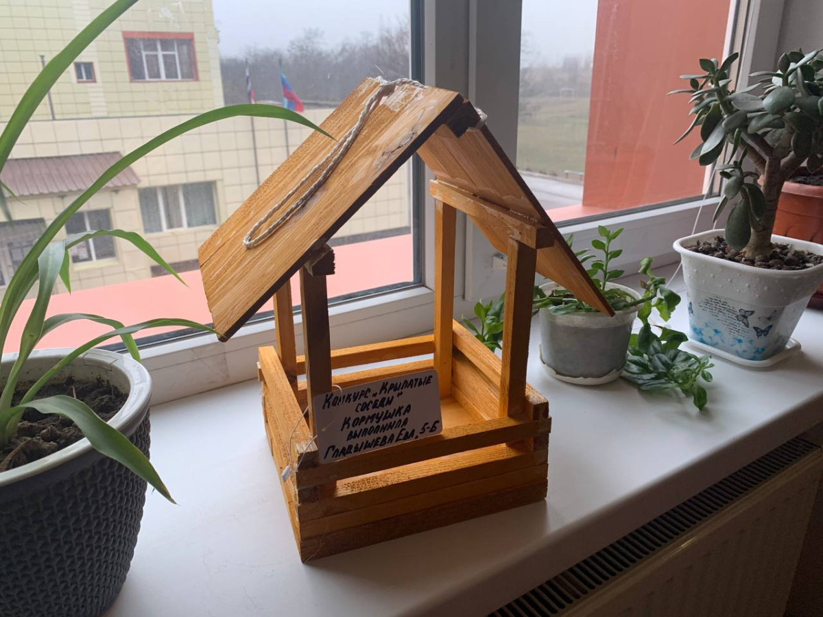 В рамках реализации проекта "Киноуроки в школах России", по инициативе классного руководителя 5-Б класса Комаровской С.В. было проведено мероприятие, девизом которого стали слова одного из героев фильма "Первое дело"- Думай о великом и Бог о тебе позаботится". .После просмотра ребята обсудили увиденное и высказали свое мнение о том, что же хотели сказать создатели фильма. Вместе с классным руководителем разобрали основные качества, затронутые в фильме. Доброе дело придумали сразу. Так же, как и герои фильма, ребята решили помогать бездомным животным и зимующим птицам. По дороге в школу некоторым ребятам часто встречаются бездомные животные, которых они решили «опекать». К выполнении данной практики подключили и родителей класса. Совместно с родителями дети изготовили кормушки для зимующих птиц. Эти кормушки были развешены около школы, во дворах и часть передана лесничествам.