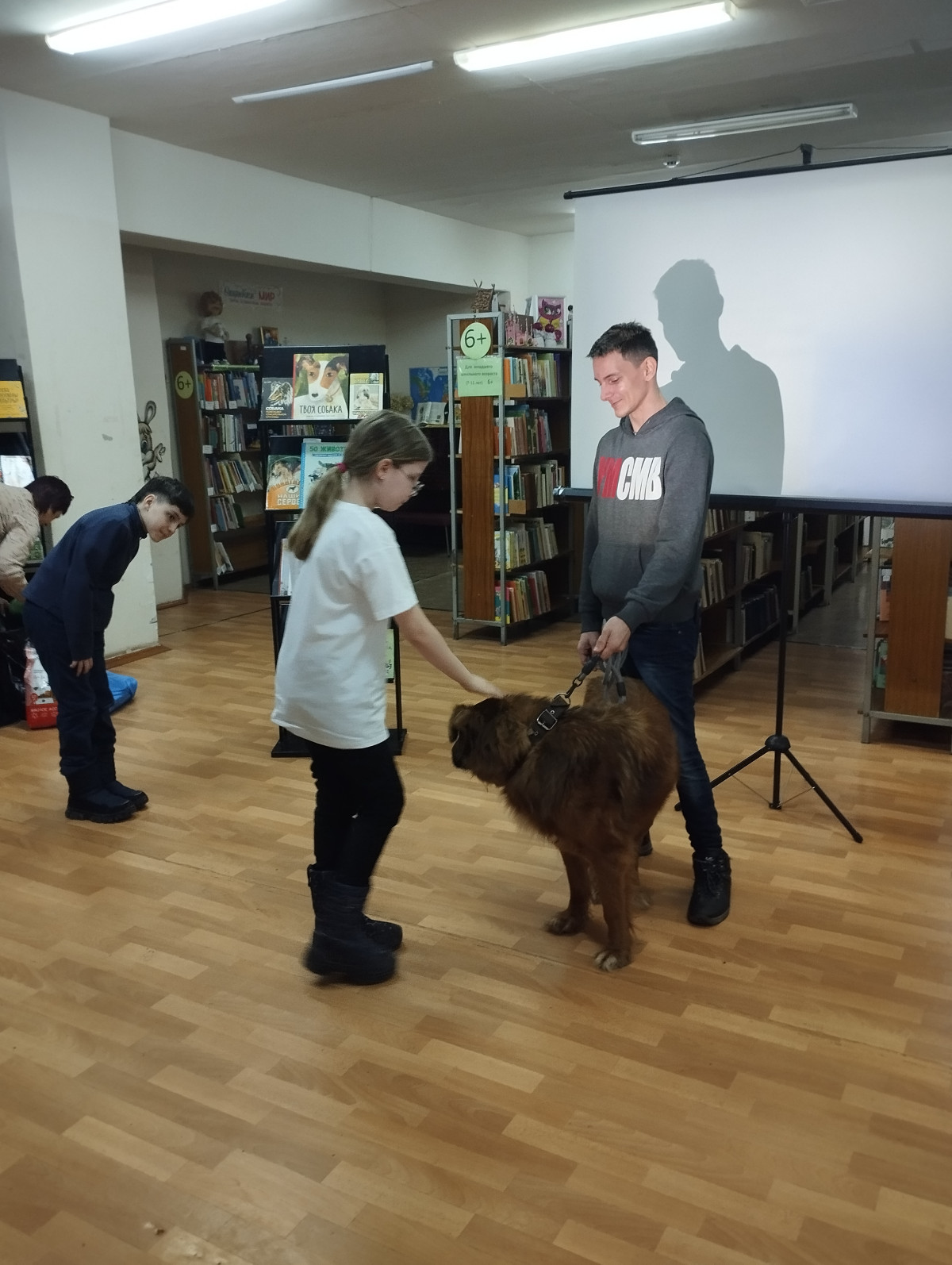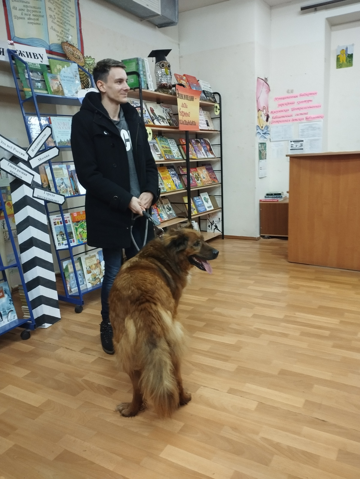 Запланировали в ближайшее время поход в приют для животных "Милый друг". Для начала познакомились с волонтёром, зоопсихологом и кинологом приюта Денисом Сергеевичем. Он пришёл не один,а с настоящей собакой - спасателем Лохматым (вытащила из воды больше 20 человек).