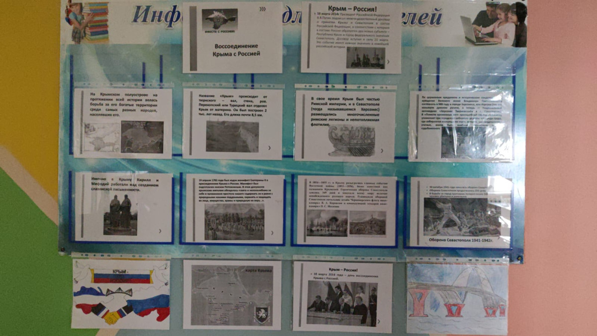 А также, был оформлен тематический стенд в коридоре школы, где все ученики могли прочитать об исторической дате для нашей страны.