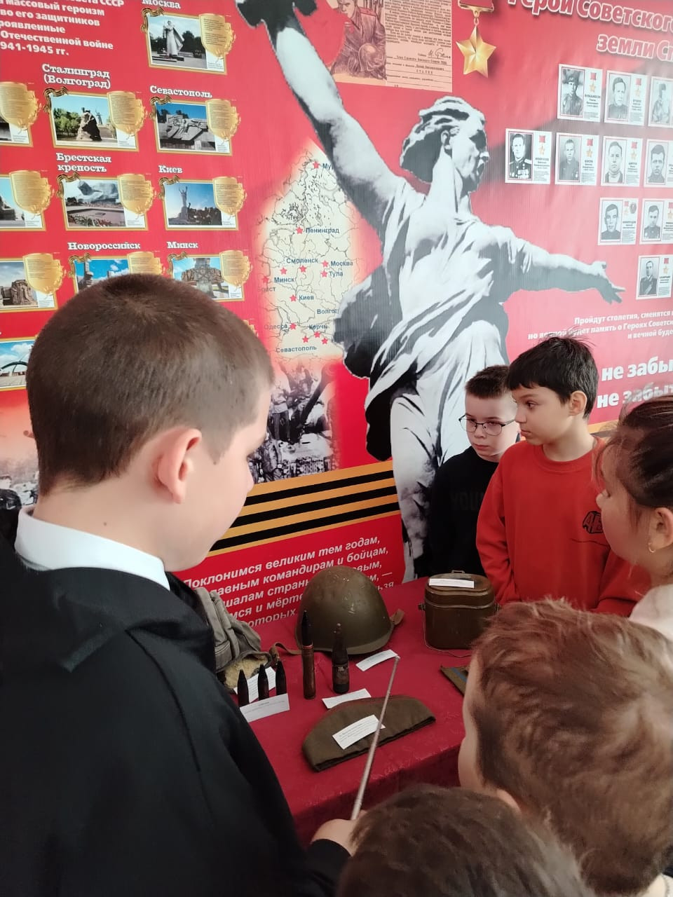 Посетили в школьном музее «Исток» зал,посвящённый Великой Отечественной войне. Экскурсию провёл для детей ученик 7 «Б» класса Фролов Иван. Экскурсовод показал экспозиции предметов в музее, рассказал о героях Советского Союза земли Спасской,и посмотрели альбомы. Приняли участие в мероприятии «У войны не детское лицо»,на котором представили проект о пионере-герое Вите Хоменко. https://t.me/scooll_3/7455