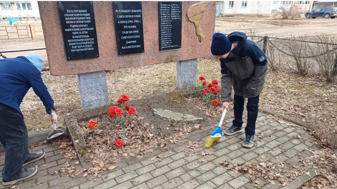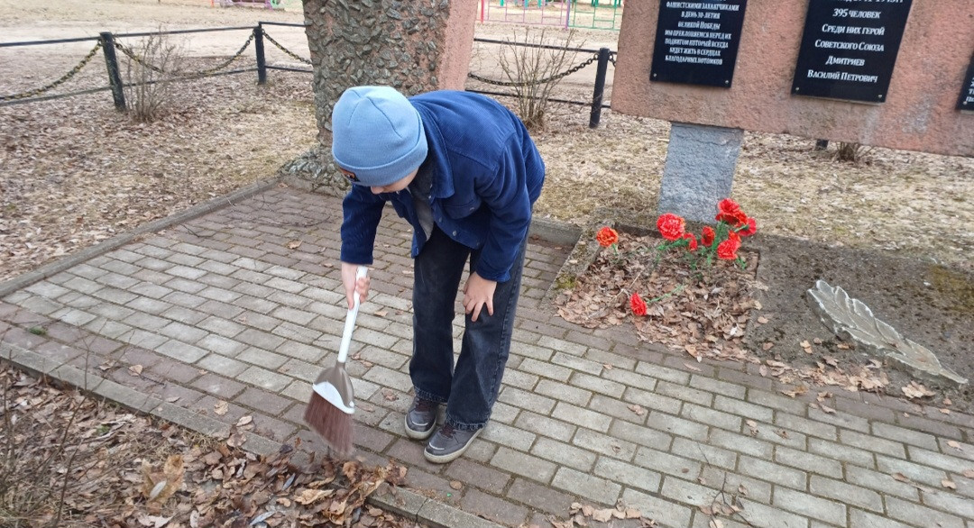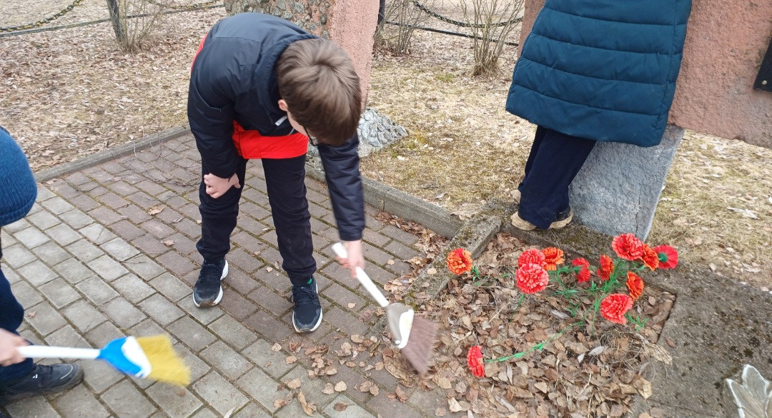Уход за обелисками - это не только дань уважения и память о прошлом, но и уникальная возможность для подрастающего поколения почувствовать связь времен и понять важность собственной истории! Учащиеся очистили территорию памятного знака от прошлогодней листвы, почистили дорожку.