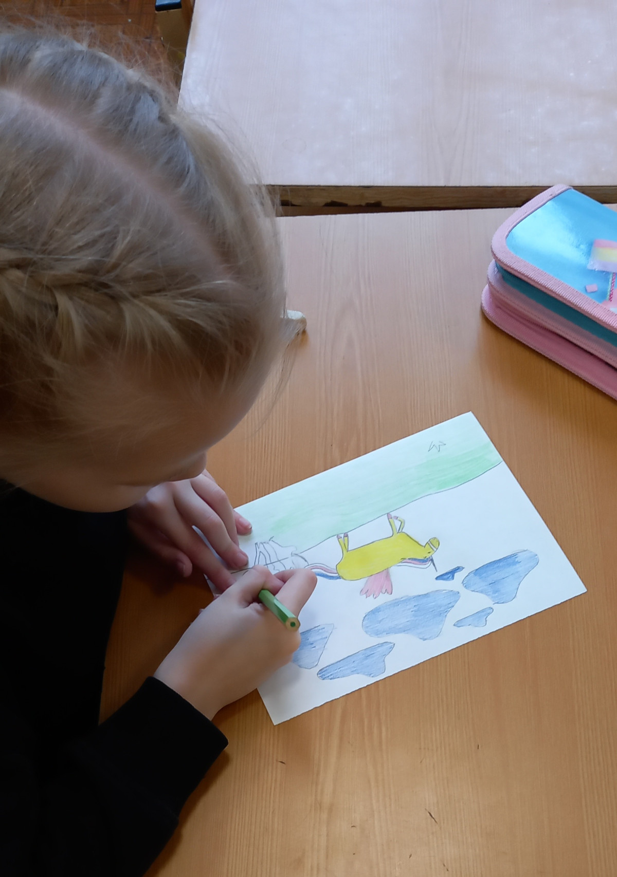 6 марта ученики 1 "А" класса посмотрели фильм «Мой друг единорог» по теме в рамках проекта «Киноуроки в школах России», где ребята познакомились с главной героиней Полиной. Полина — удивительный ребенок с огромной силой воображения. Она рассказала, что фантазию и воображение можно применять с пользой. Любой труд, кажущийся тяжелым и невыполнимым, может быть легким и веселым.Ребята решили выразить свою фантазию в рисунках. Сами придумывали себе воображаемое существо.