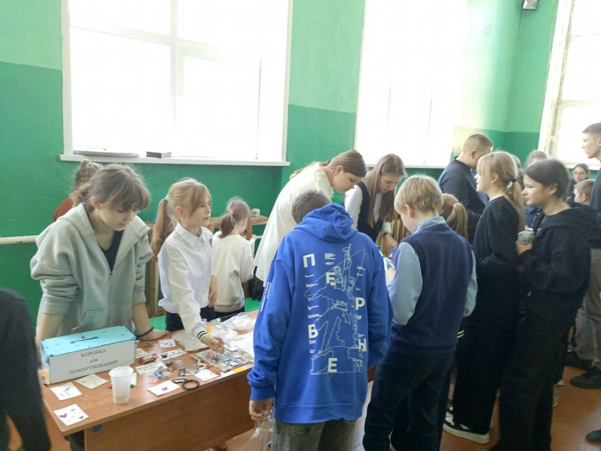 В марте 2025 года в рамках Всероссийского проекта "Киноуроки" в школах России ученики 6 класса посмотрели фильм "Счастливые люди". Фильм затрагивает такое качество, как счастье и подвиг. Счастье - это глубокая и непостижимая радость, которая наполняет наше сердце и душу. Оно всегда разное и может быть в каких-то мелочах. После бурного обсуждения мы решили принять участие в Благотворительной ярмарке, которая проходила в нашей школе, а вырученные средства передать в пункт поддержки воинов "Отчизна" г.Липки. К ярмарке дети подготовились основательно. При поддержки родителей, они принесли выпечку и сувениры, сделанные своими руками. Надеемся,что наш маленький подвиг поможет нашим бойцам СВО.