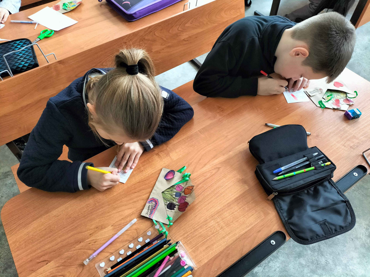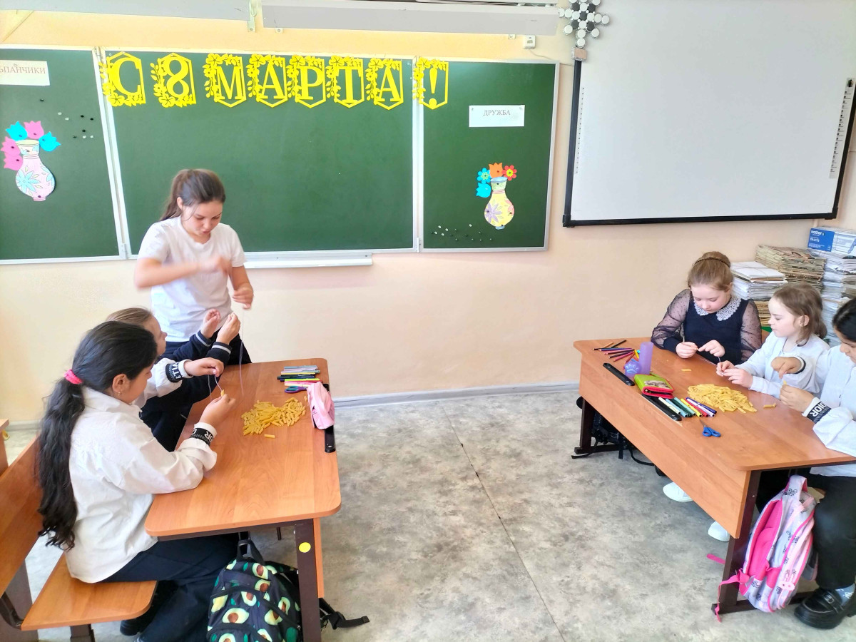 Дети с большим интересом посмотрели киноурок «8 марта». Обсуждение фильма было очень активным, и в итоге ребята пришли к пониманию, что часто не замечают тех, кому нужна помощь, будь то поддержка, одобрение или просто вежливость и доброта. Ученики поняли, что и их мамы, которые их любят, заботятся и оберегают, также нуждаются в внимании и ласке. Они признались, что не всегда показывают своим мамам свои чувства и нередко не говорят им спасибо. Чтобы исправить ситуацию, решили сделать своими руками поздравительные открытки для мам.