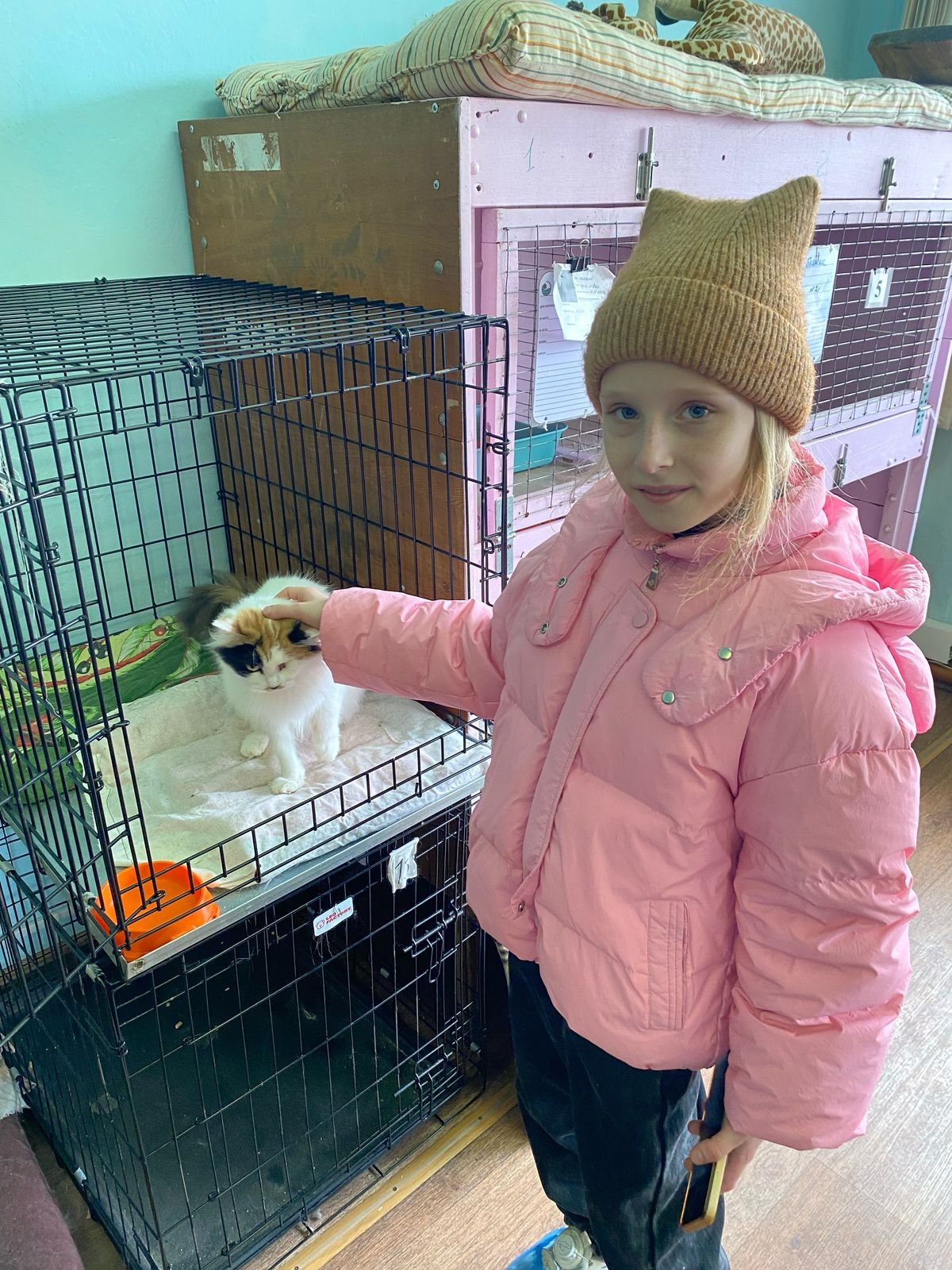 В приюте нас встретили как старые знакомые, так и новые жильцы. Конечно, собаками можно было только любоваться, но нельзя погладить. А кошки были рады получить порцию ласки и внимания. Живое общение с пушистыми друзьями нельзя ничем заменить!