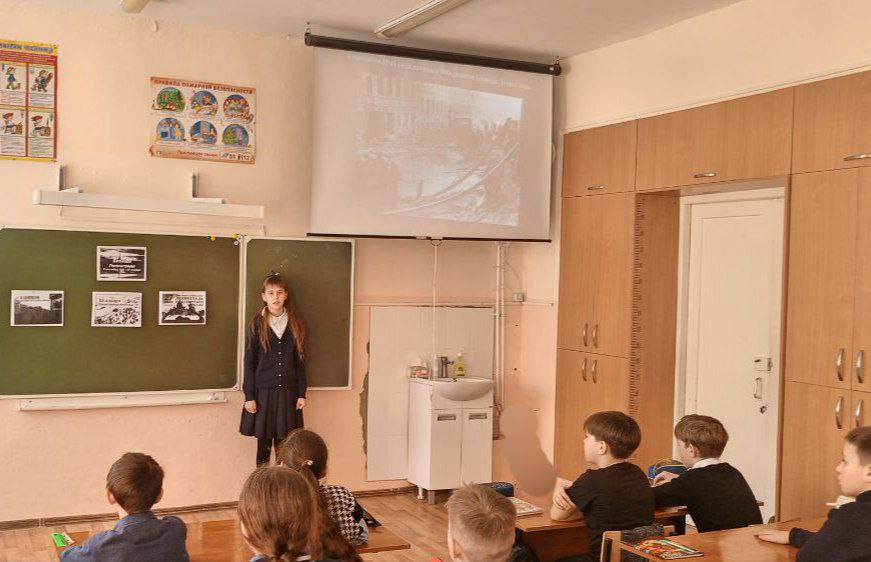 Карина Р. и Татьяна К. прочитали стихотворения, посвящённые этим событиям. Вместе с классным руководителем ребята вспомнили важные даты блокадного Ленинграда и активно обсуждали их, высказывая свои мнения, проявляя искренние эмоции. Дети пришли к выводу, что народ должен знать своё прошлое, чтобы иметь будущее.