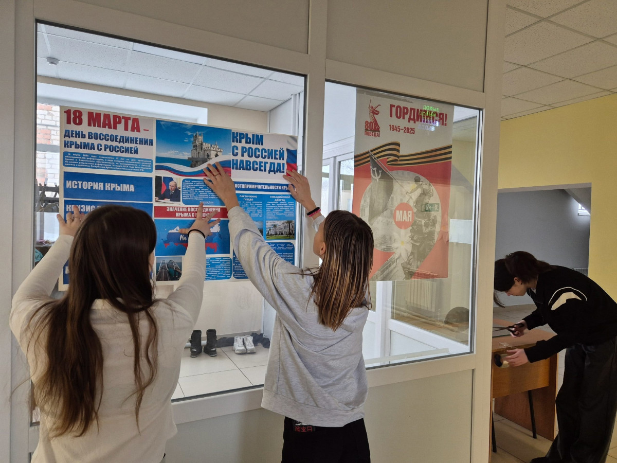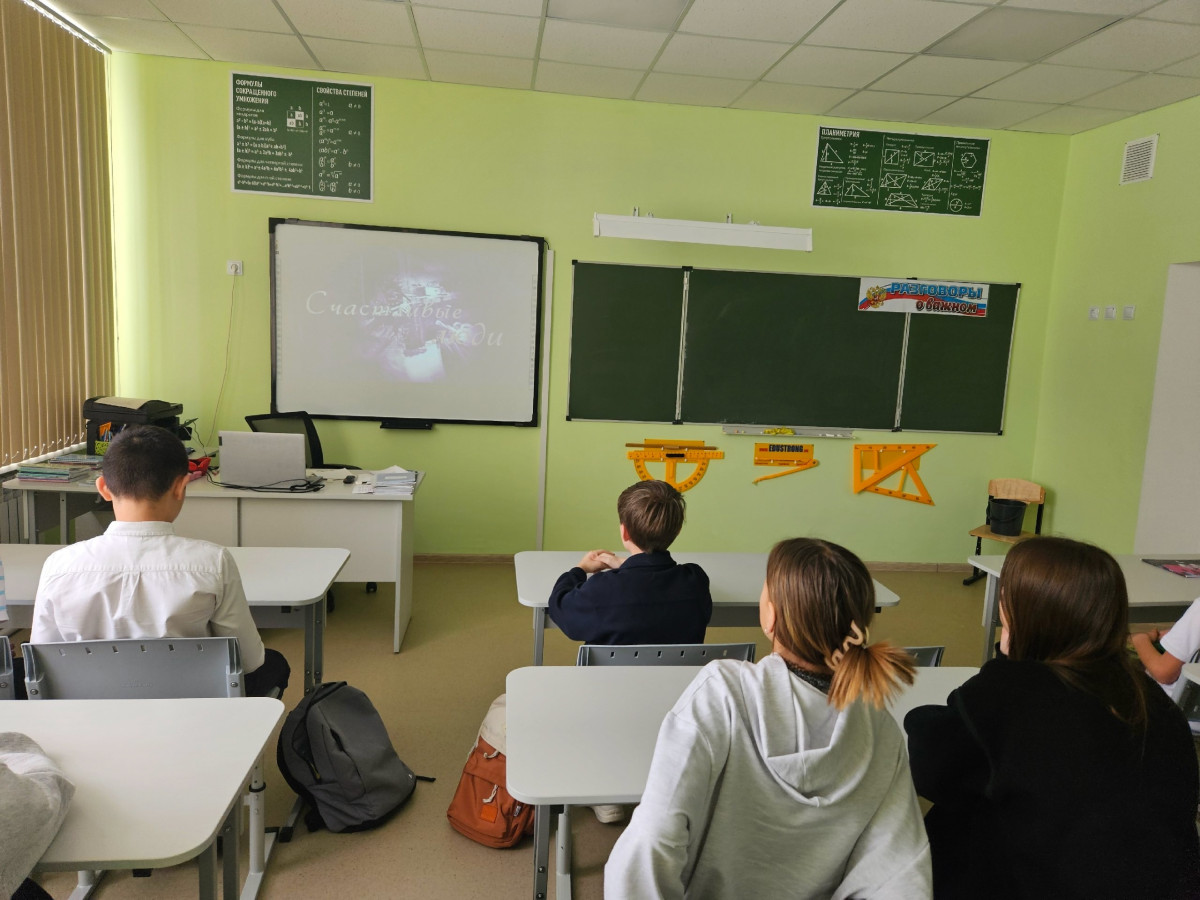 В рамках реализации Всероссийского проекта "Киноуроки в школах России" учащиеся 6-7 классов посмотрели фильм "Счастливые люди". Фильм относит нас к событиям 2014 года в Луганскую Народную Республику. Жители города, простые дети - истинные патриоты своей малой родины. Несмотря на беды жителей Луганска, фильм носит название "Счастливые люди". Во время обсуждения фильма ребята разобрали такие понятия как великодушие, самоотверженность, достоинство, подвиг, добро и зло, бесстрашие и человеколюбие. Учащиеся 6-7 классов вспомнили своих односельчан – участников СВО, поговорили об их службе, подвигах. В рамках социальной практики учащиеся 6-7 класса предложили распределить обязанности и собрать материал о присоединении Крыма, ЛНР, ДНР, Херсонской и Запорожской областей к России. В преддверии празднования годовщины со дня воссоединения Крыма с Россией, учащиеся поделились своими знаниями с другими классами нашей школы. Они показали ребятам презентацию по данной теме, а ученики 7 класса создали интерактивную стенгазету "Крым и Россия вместе навсегда".