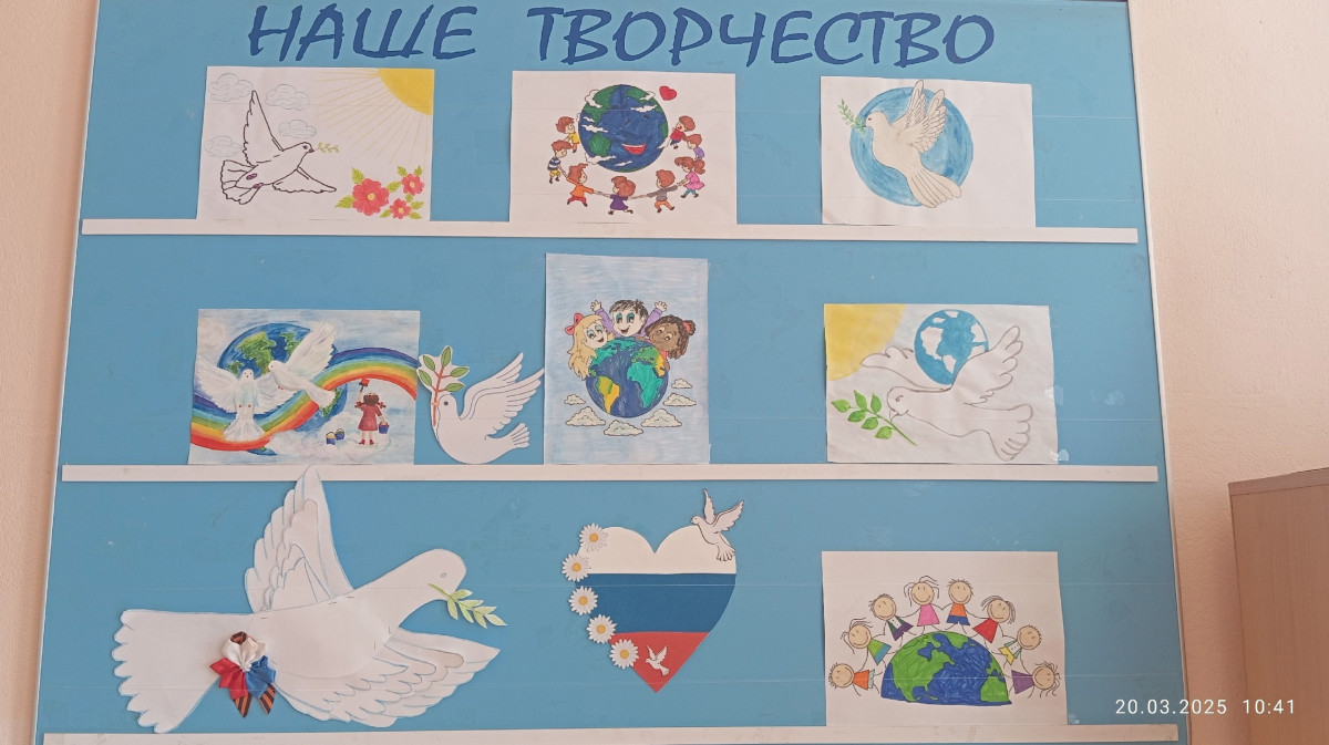 Но качество, развивающее в фильме, это фантазия, а кто не любит фантазировать? В настоящее время все люди хотят мира и чтобы закончилась поскорее война, которая уносит у многих близких людей, друзей. У мальчика из класса недавно погиб папа, он рассказал одноклассникам о его подвиге и героизме, что, благодаря нашим защитникам, мы можем жить спокойно, мечтать и фантазировать. После обсуждения дети предложили нарисовать рисунки «Я хочу, чтобы на земле был Мир». Что может быть важнее для маленького человечка, только начинающего познавать этот огромный, порой пугающий, но безумно интересный мир? Детские рисунки – вот они, искренние, чистые и трогательные воплощения мечты о всеобщей гармонии.