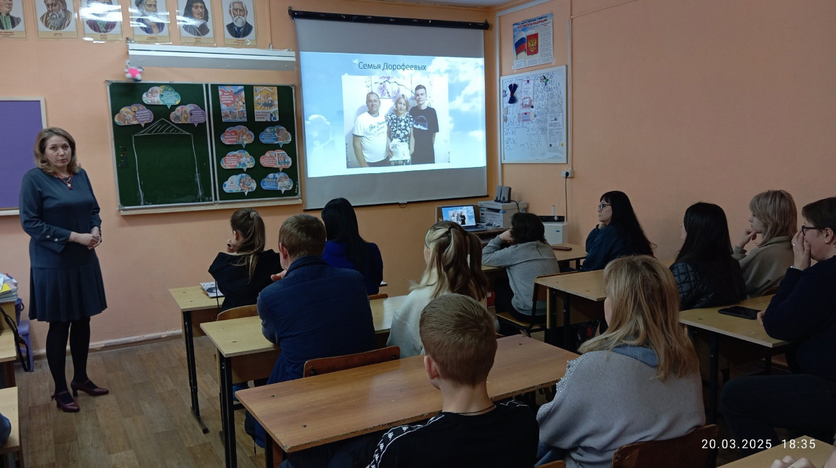 Ребятами было предложено провести совместное родительское собрание «Семья и семейные ценности». Каждый ребенок с родителями дома ответственно готовился к этому мероприятию. На собрание была приглашена Дорофеева Т.Ю., несмотря на молодой возраст, они со своим мужем вместе почти 31 год, из которых женаты 28 лет. Она рассказала о своей семье и традициях и ценностях, о том, что всегда нужно быть в семье вместе, нести ответственность друг за друга.