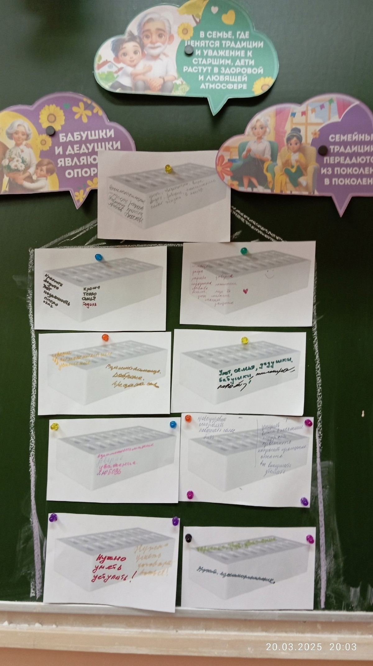 Каждый ребенок вместе с родителем рассказал о своей семье, кто-то о династии медсестер, у кого в семье ветераны Войны и т.д. Построили крепкий дом из кирпичей.