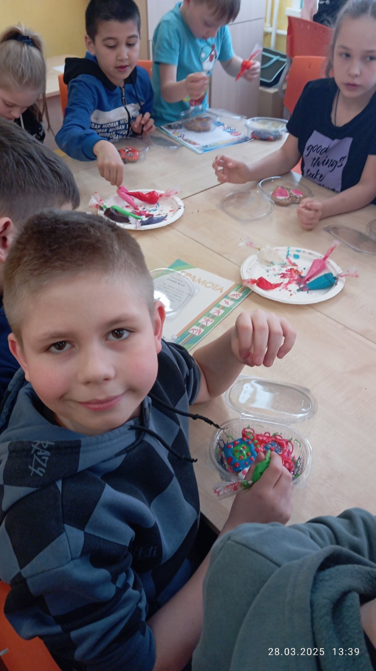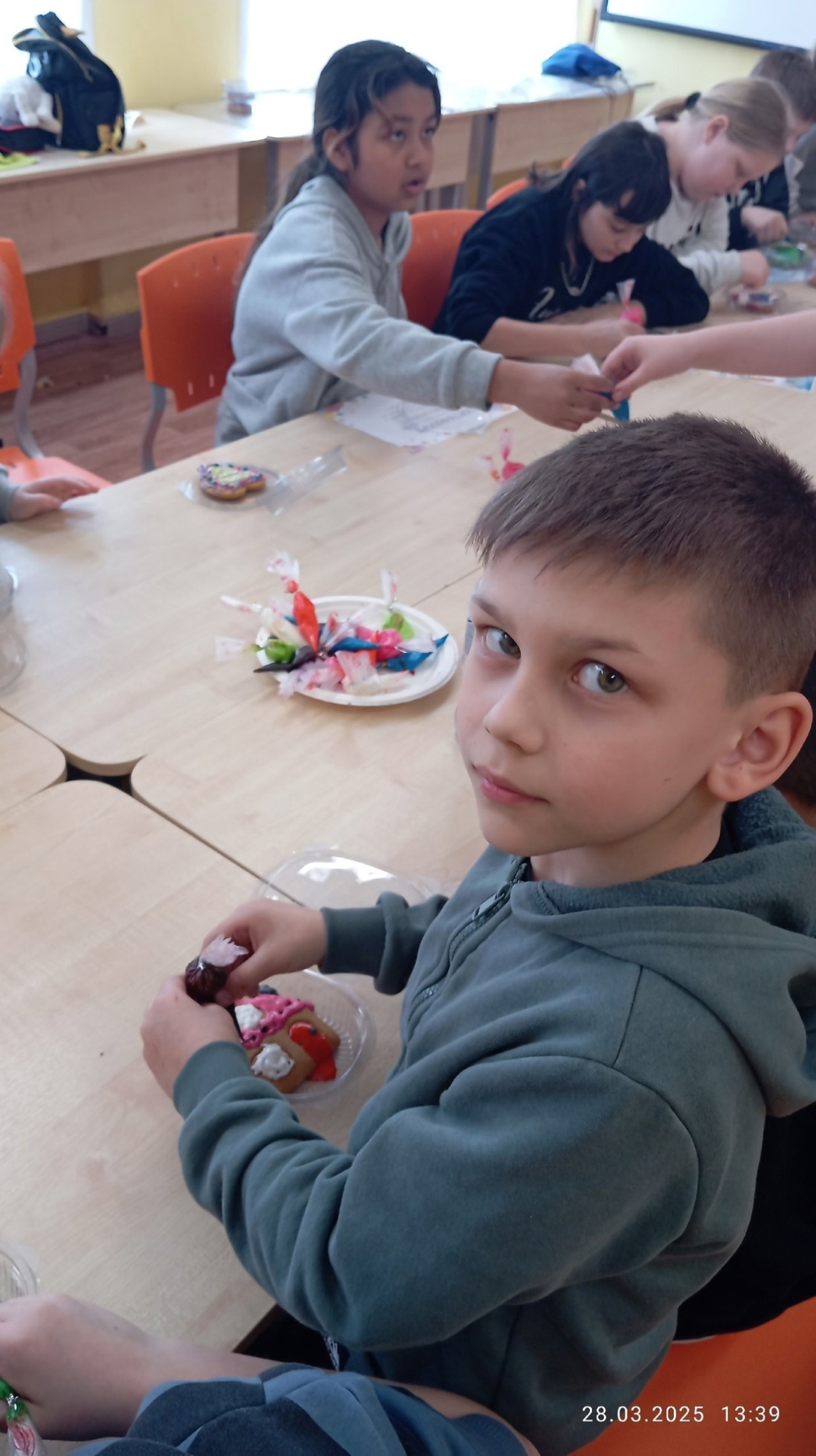 Последний день работы весеннего пришкольного лагеря "Радуга детства» был необычный. К мальчишкам и девчонкам в гости пришла волонтёр «Многодетного десанта» Киреевского филиала благотворительного фонда «Сова» Анжелика Нагорная. Она принесла детям изготовленные собственными руками ароматные имбирные пряники и предложила всем объединиться для общего доброго дела, и ребята не остались в стороне. Они приняли участие в мастер-классе по росписи пряников под руководством опытного наставника. С большим интересом и старанием дети украшали пряники красочными узорами, нанося на них разноцветную глазурь, проявляя фантазию и творчество. У каждого получился пряничный шедевр. Мальчишки и девчонки получили много хороших впечатлений. А все вырученные средства были переданы для нужд солдат СВО.
