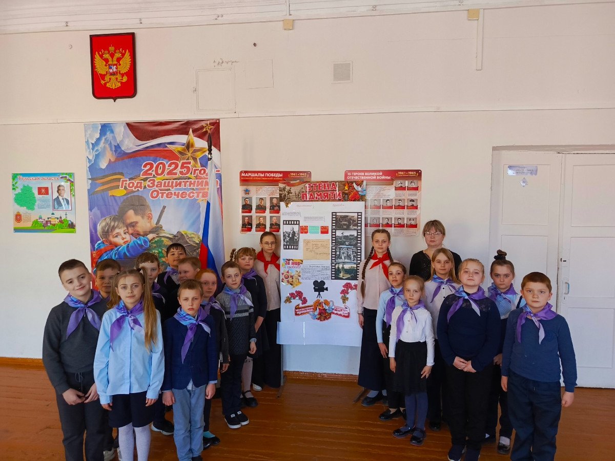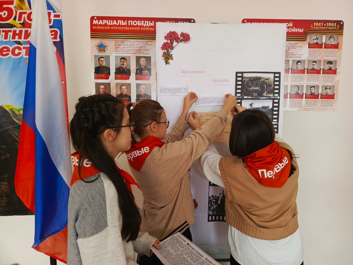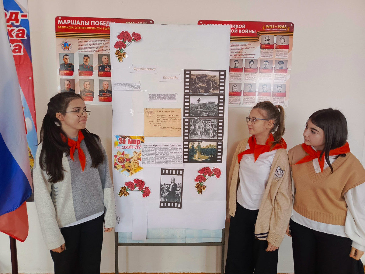 Один из учащихся класса рассказал, что существовали фронтовые бригады во времена Великой Отечественной войны, которые, как и ребята из фильма, ездили по госпиталям, выступали в нескольких километрах от боевых действий на башнях танка. Ребята были воодушевлены этими историями и решили в честь 80 летия Победы создать стенд, на котором рассказывается о них.