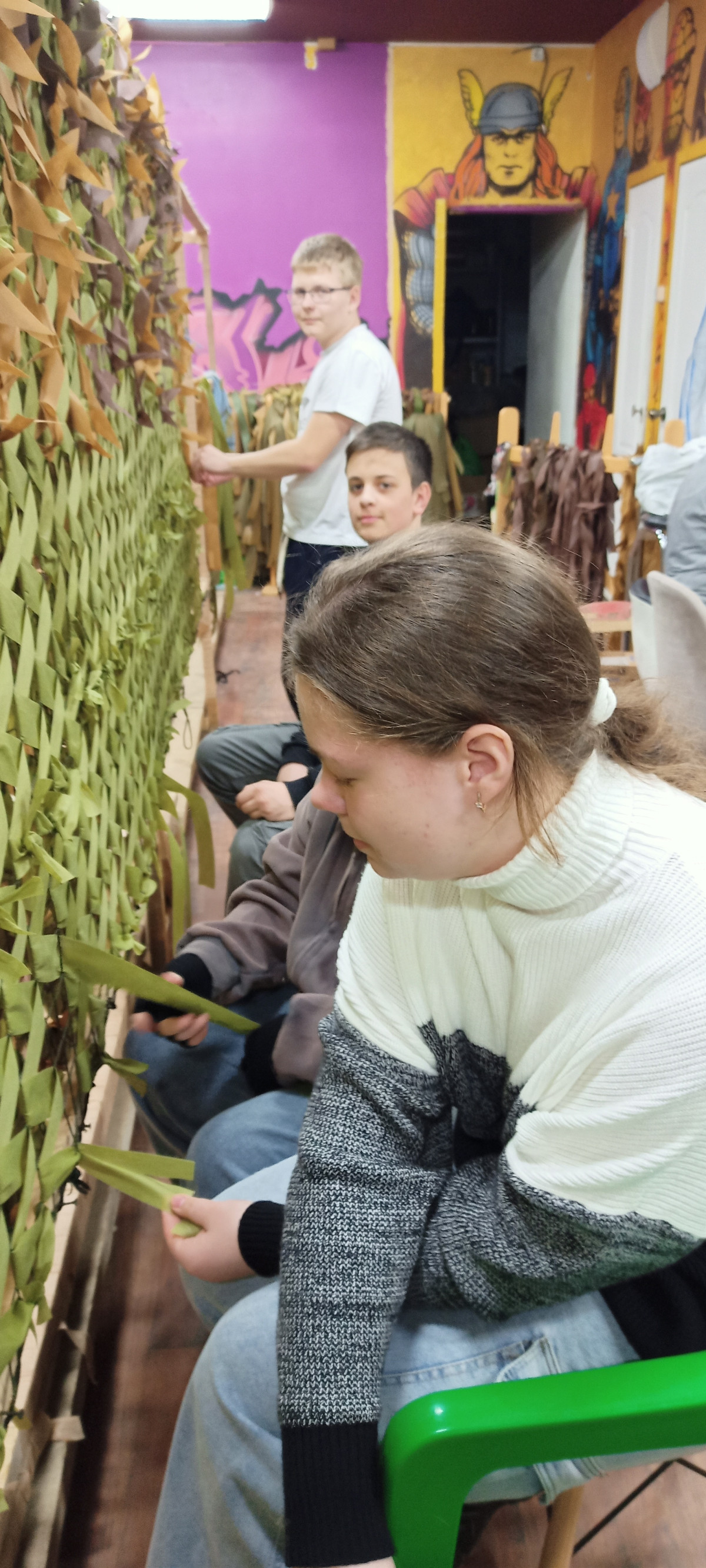 Исходя из этого ребята решили внести посильный вклад в дело Победы СВО- помочь волонтёрам плести маскировочные сети.