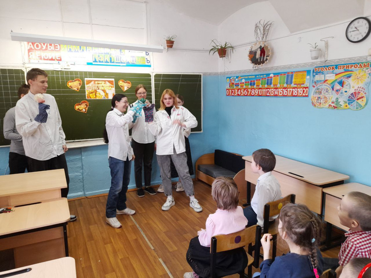Посмотрев фильм «809, или Один день Вовки во исполнение Указа», ребята 8 класса обсудили его содержание и понятие «активная жизненная позиция». Ребята решили на примере сказочных героев рассказать об этом качестве обучающимся начальных классов. Малыши с удовольствием принимали участие в постановке сказки и определении добрых качеств сказочных персонажей.
