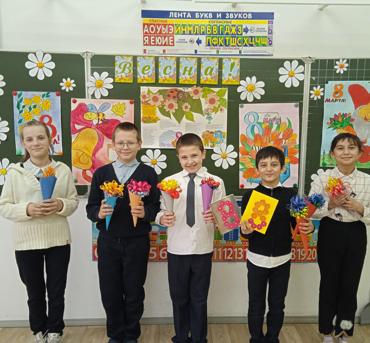 Вместе с учениками 2 класса изготовили открытки на 8 марта для бабушек , мам, сестренек и учителей. Проявили внимание и заботу.