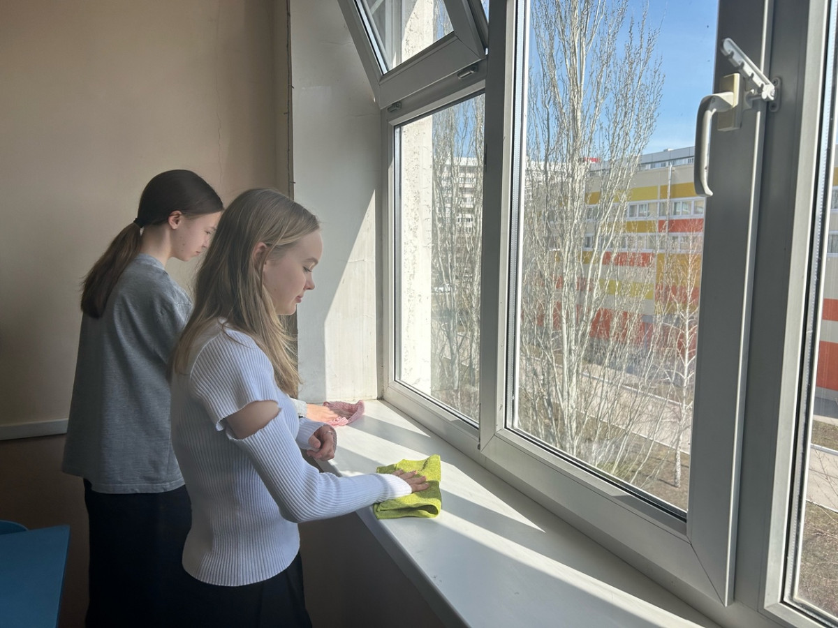 В качестве социальной практики ученики 7Г класса решили на каникулах провести генеральную уборку в своем кабинете и украсить его к предстоящему Дню Победы. Ребята с энтузиазмом взялись за работу и аккуратно отмыли парты, стулья и стеновые панели в своём классе. Они работали сообща, помогали друг другу и трудились на славу. В результате усилий каждого ученика их класс стал блестящим и чистым, атмосфера в кабинете стала более уютной и комфортной