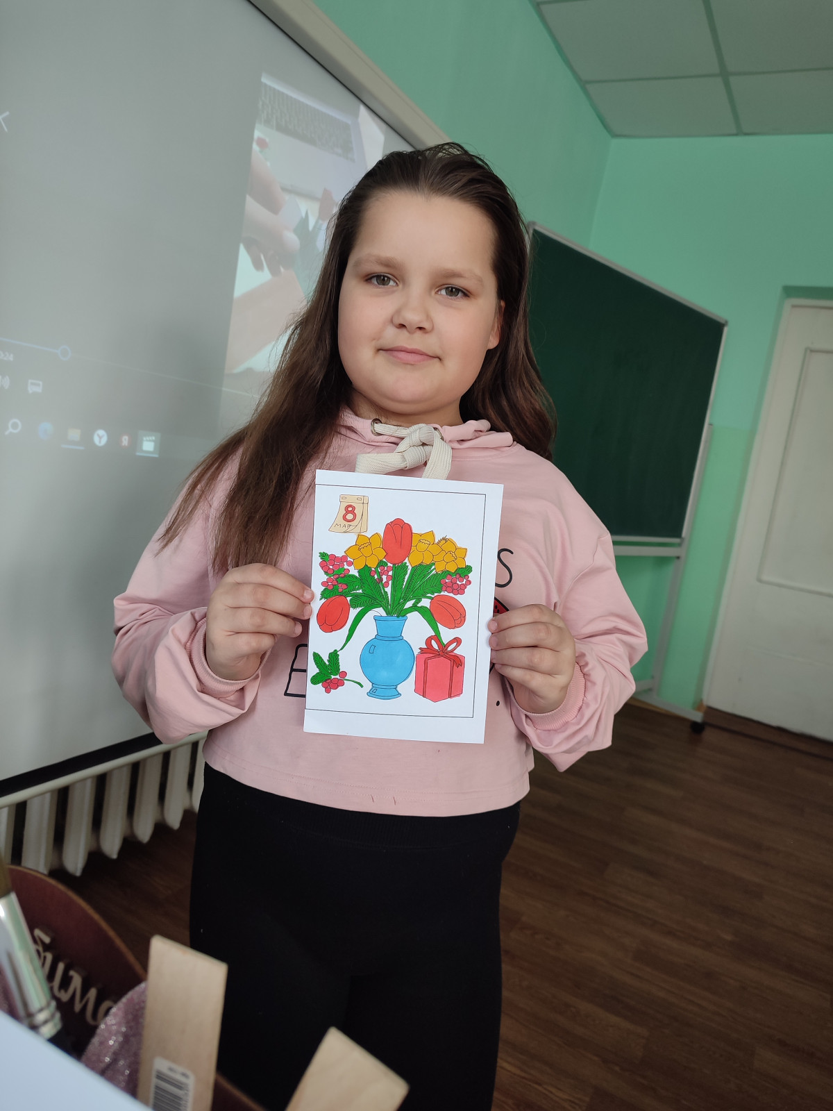 Месяц март ассоциируется прежде всего с Международным женским днём, поэтому наша социальная практика была направлена на поздравление женщин с праздником. Дети сделали открытки, которые подарили учителям и своим близким.