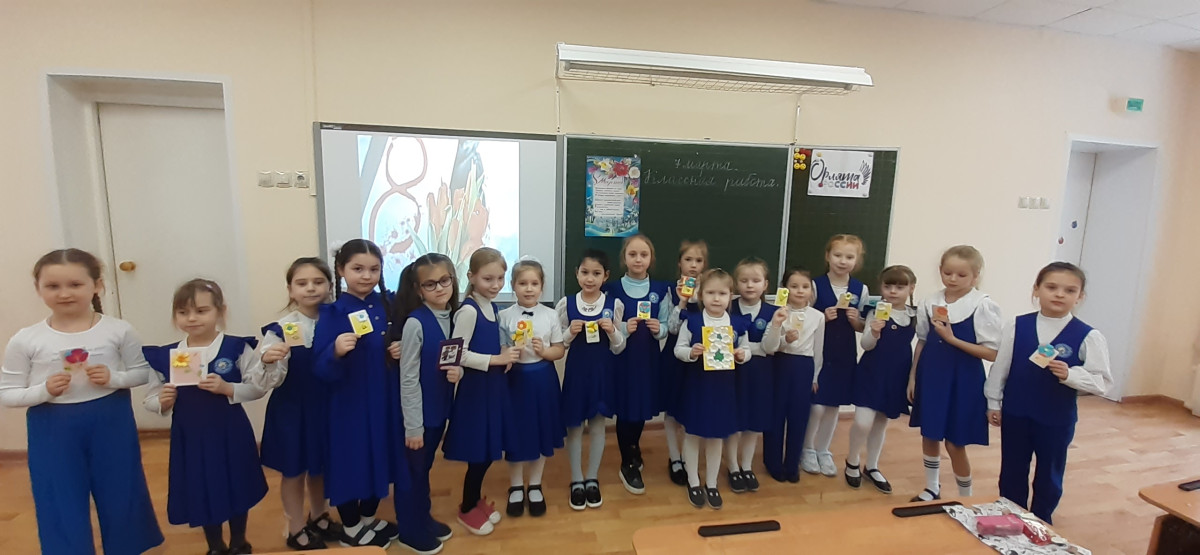 В начале марта учителем было предложено посмотреть фильм « Мой друг Единорог». Перед просмотром фильма ребята включились в мотивационную беседу. Дети рассуждали, чем фантазия отличается от воображения. Где дети уже использовали своё воображение, а где фантазию? Вспомнили добрый урок, который проводили « серебряные» волонтёры. После просмотра фильма дети стали предлагать свои идеи. Сначала предложили нарисовать воображаемых несуществующих животных. А в преддверии праздника 8 марта все дети включили своё воображение и сделали своими руками букетики для мам и записали видео песни с праздником. Мамы были благодарны и написали благодарственные отзывы. Каждый из мальчиков придумал поздравление и включился в волонтёрскую деятельность. Ролан поздравил работников кухни, поздравил технический персонал. Ролан получил много добрых слов. Елисей проявил воображение и сделал открытки своими руками для всех девочек и учителя. Открытки были все разные. Мальчики проявили воображение и спели частушки к празднику, тем самым доставили радость. Первоклашки сделали вывод, что маленькое чудо можно сделать своими руками включая фантазию и воображение и принести добро тем, кто находится рядом.