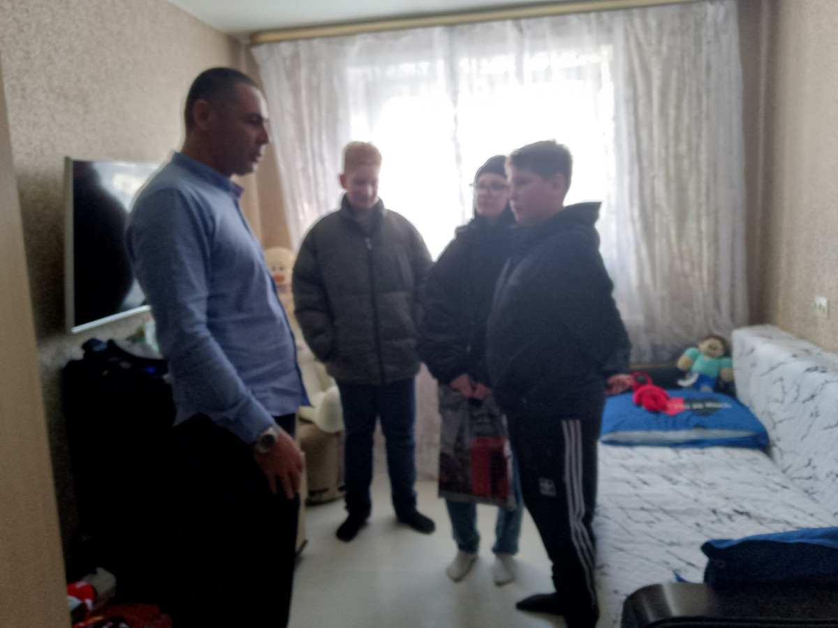 В этот особенный день ученики посетили Дмитрия Владимировича Ухлебина, Жульвера Альбертовича Амаякяна, Максима Юрьевича Зверева, чтобы не только передать подарки, но и выразить свою благодарность за их службу и подвиг. Ребята подготовили поздравления бойцам, пели под гитару, с интересом задавали вопросы и слушали рассказы военных.