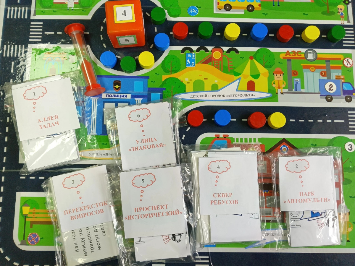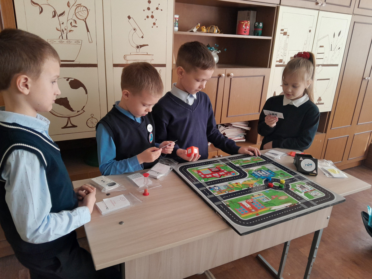 На классном часе, после просмотра фильма, ребята вспомнили девиз одного из уроков математики – «Каждому открытию всегда предшествует воображение». Дети, посещающие кружок ЮИД, предложили пофантазировать и придумать игру по правилам дорожного движения. Одноклассникам очень понравилось предложение ребят, и работа закипела. Все дети разделились на группы, распределили обязанности и, в соответствии с составленным планом, приступили к созданию игры «Большая прогулка». ЮИДовцы работали над игровым полем, а группы подбирали материал для карточек: «Аллея задач», «Улица «Знаковая», «Сквер ребусов», «Проспект Исторический», «Перекресток вопросов», «Детский городок «Автомульти». Когда запланированная работа была выполнена, ребята с большим интересом и удовольствием приняли участие в игре, а потом разместили ее в игровом уголке в рекреации школы. На переменах теперь учащиеся начальных классов в игре закрепляют свои знания по ПДД.