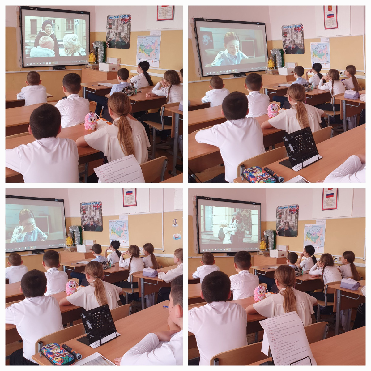 В рамках проекта «Киноуроки в школах России» 7 марта учащиеся 4 – А класса посмотрели фильм Елены Дубровской «8 Марта».