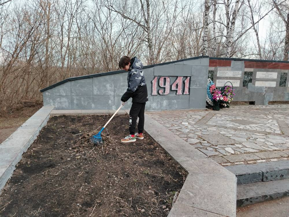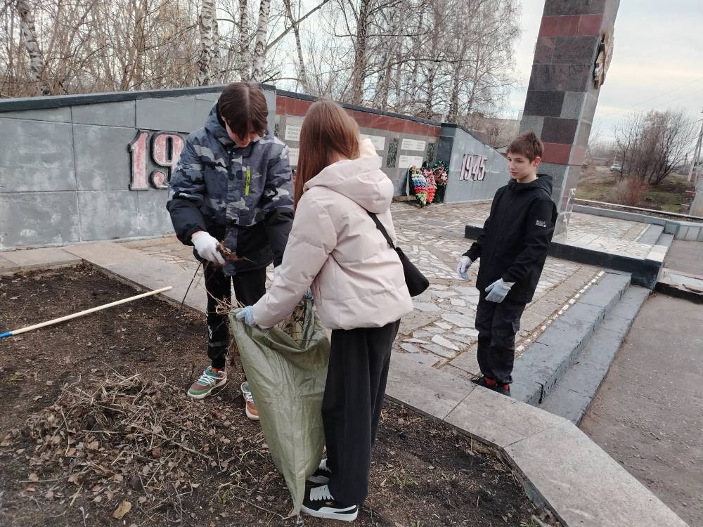Школьники провели масштабную уборку территории вокруг памятника. Было собрано 9 мешков бытового мусора, подготовлены под посадку клумбы. Эта акция стала не просто наведением порядка, а важным уроком патриотизма и уважения к истории своей страны.