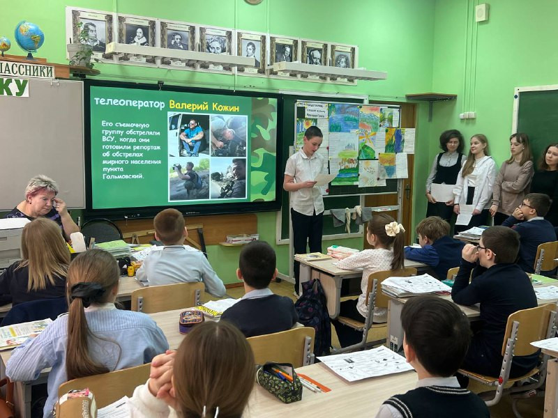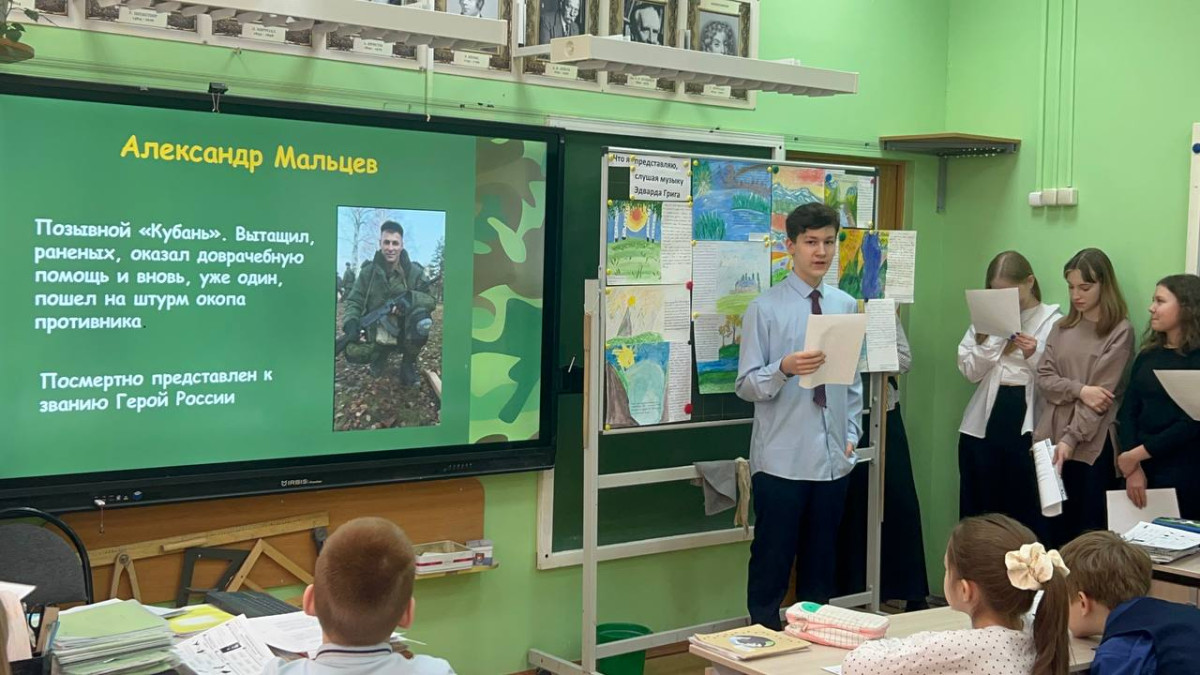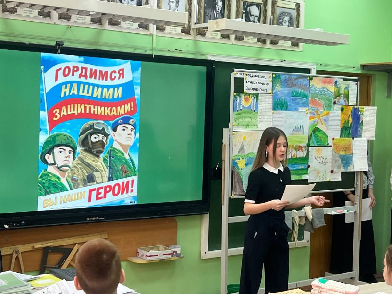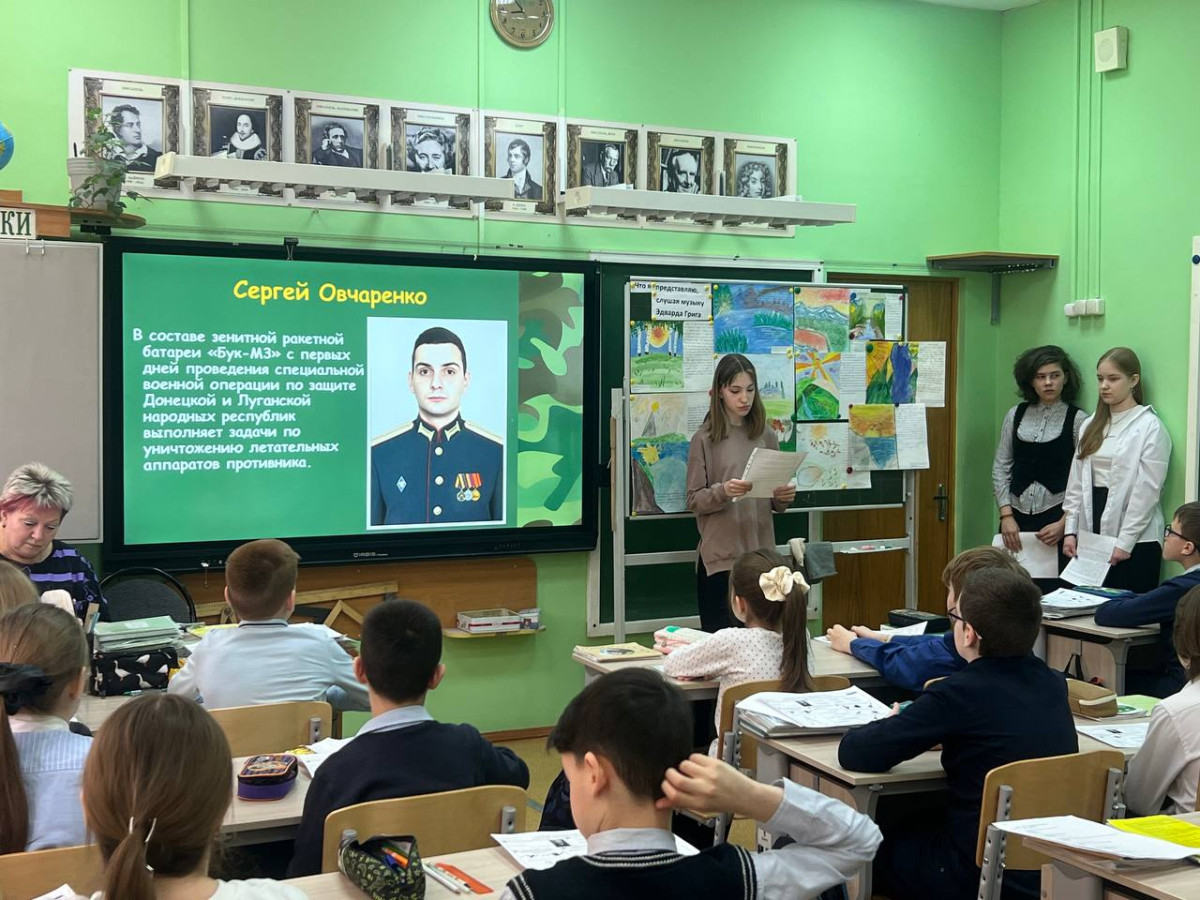 3) Отрадно, что класс, в которой мы пошли со своим классным часом, был выбран не случайно. Дело в том, что в этом классе учатся многие братья и сестры моих ребят. Для них это тоже ответственное мероприятие, на них же будут смотреть, и слушать их родные. Кто-то из ребят когда рассказывал или читал про героев СВО, иногда останавливались, потому что плакали... Я как классный руководитель рада, что они не просто читали тексты, а пропускали их через сердца, а значит, были в данную минуту искренними и настоящими.
