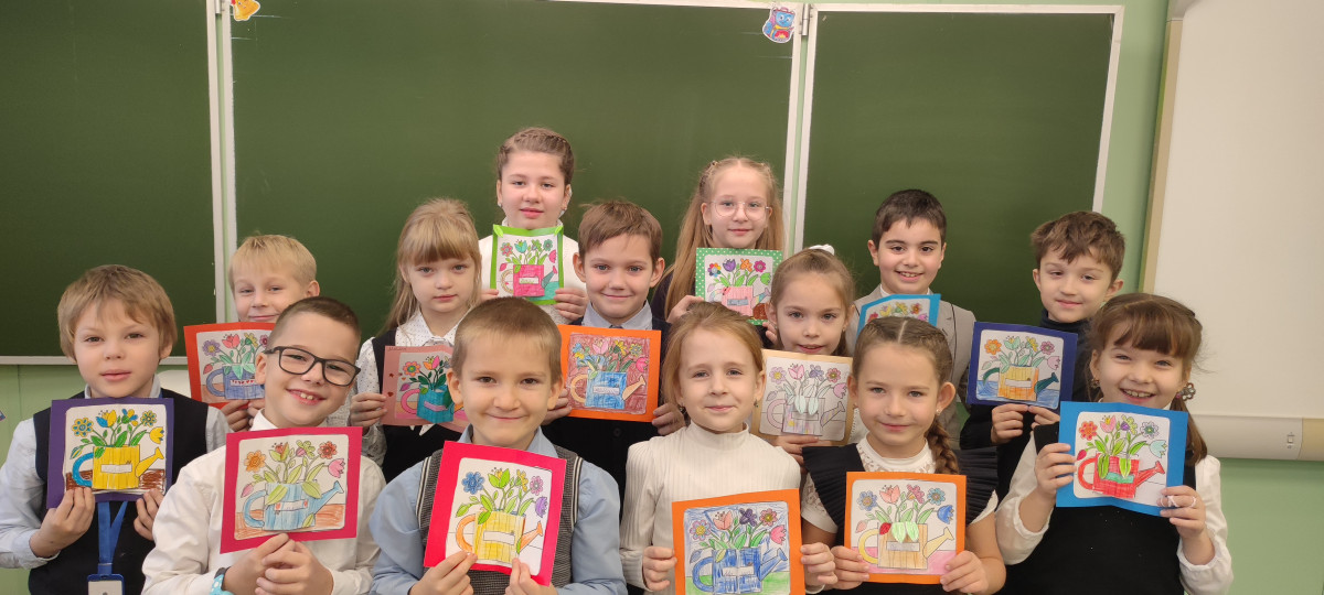 Во время работы ученики помогали друг другу. Эта работа и самим ребятам принесла радость от чувства, что своим мамам они могут доставить радость.