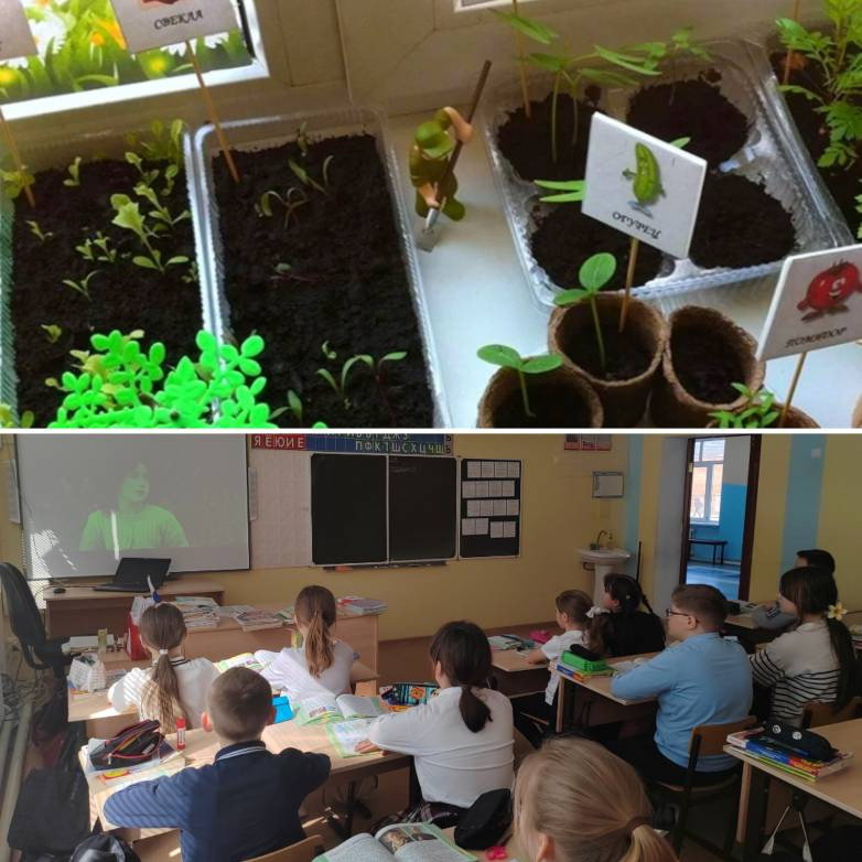 Ученики выполнили проект: «Полезное на подоконнике», посадили семена свеклы, помидоров, огурцов на подоконниках классной комнаты.