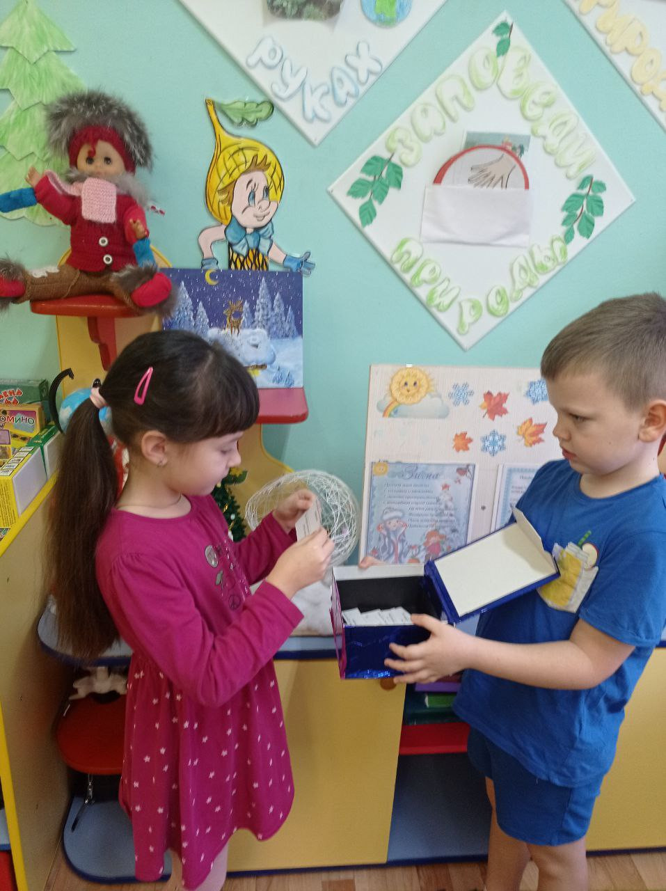 Перед просмотром фильма педагог провела беседу с детьми: "Какого человека мы можем назвать отзывчивым?", "Как вы понимаете понятие "отзывчивость". Также было организовано чтение произведения "Вовка -добрая душа». После просмотра ребята обсудили фильм и поступки героев, выразили свое мнение. После воспитатель подвела детей к проблеме, решили изготовить "шкатулку испытаний" .В течении недели ребята доставали из шкатулки листочки с различными заданиями, и старались их выполнить.В свободной деятельности дети нарисовали "воинов света" в их представлении.