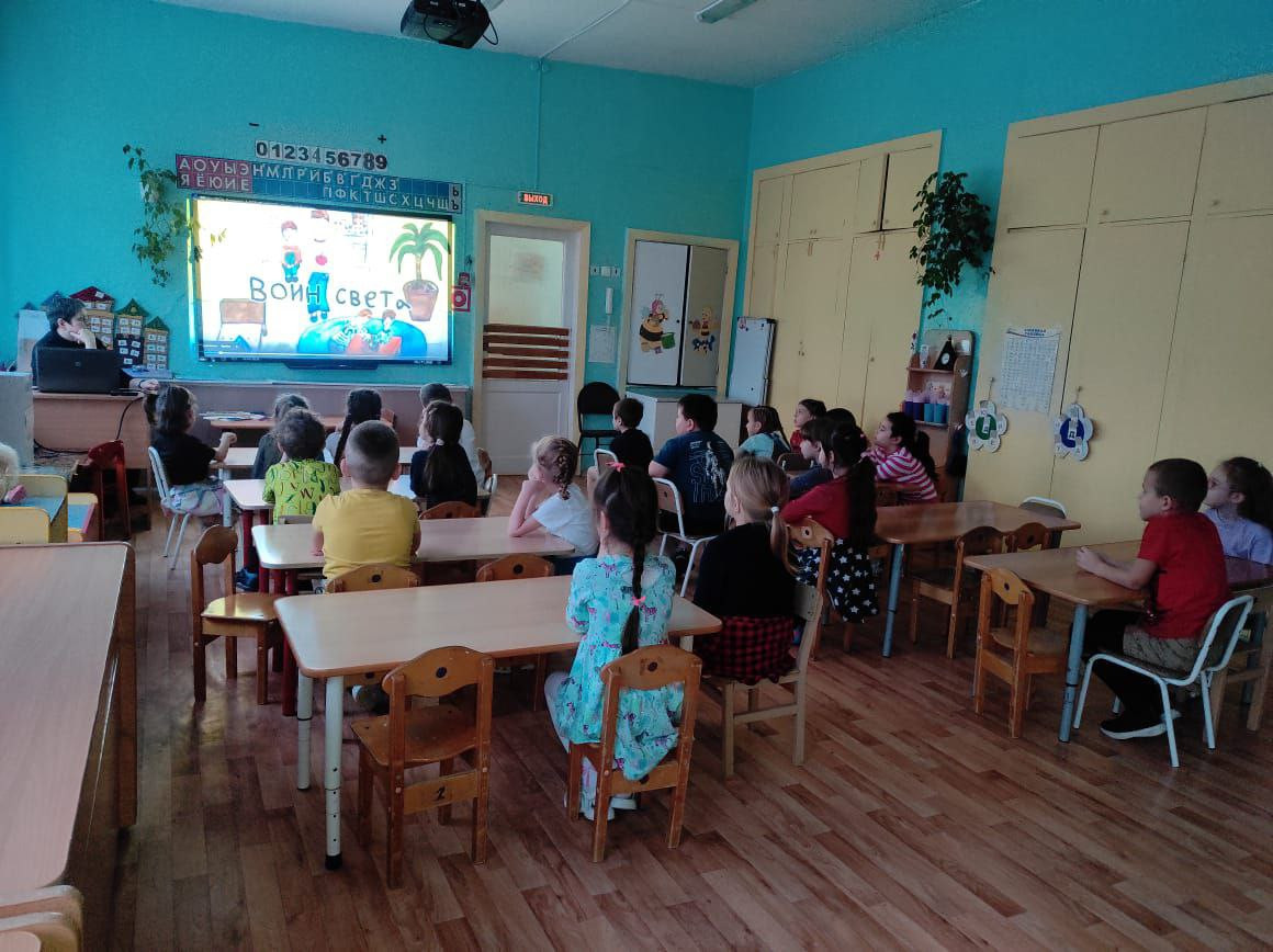 В рамках системы воспитания созидательных качеств «Киноуроки в школах России» проекта «О будущем» с детьми подготовительной группы был проведен киноурок «Воин света».