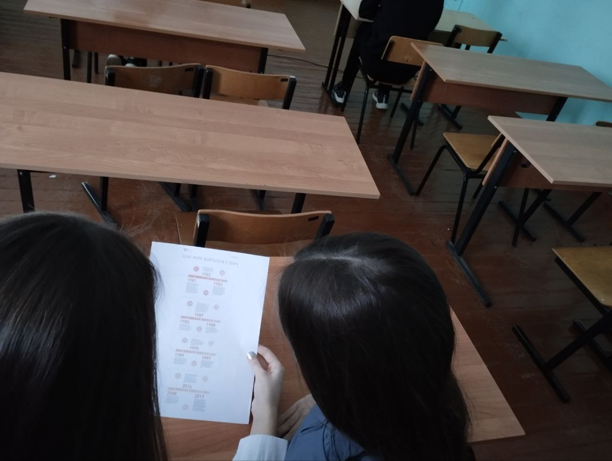 В результате обсуждения ребята оформили стенд в школе и подготовили памятки, посвящённые проблеме ВИЧ-инфекции, в которых содержится информация о том, как можно минимизировать риск заражения. Памятки включают основные правила профилактики, рекомендации по поведению и возможности получения медицинской помощи. Учащиеся также обсудили, как важно делиться этой информацией с другими, чтобы предотвратить дальнейшее распространение инфекции.