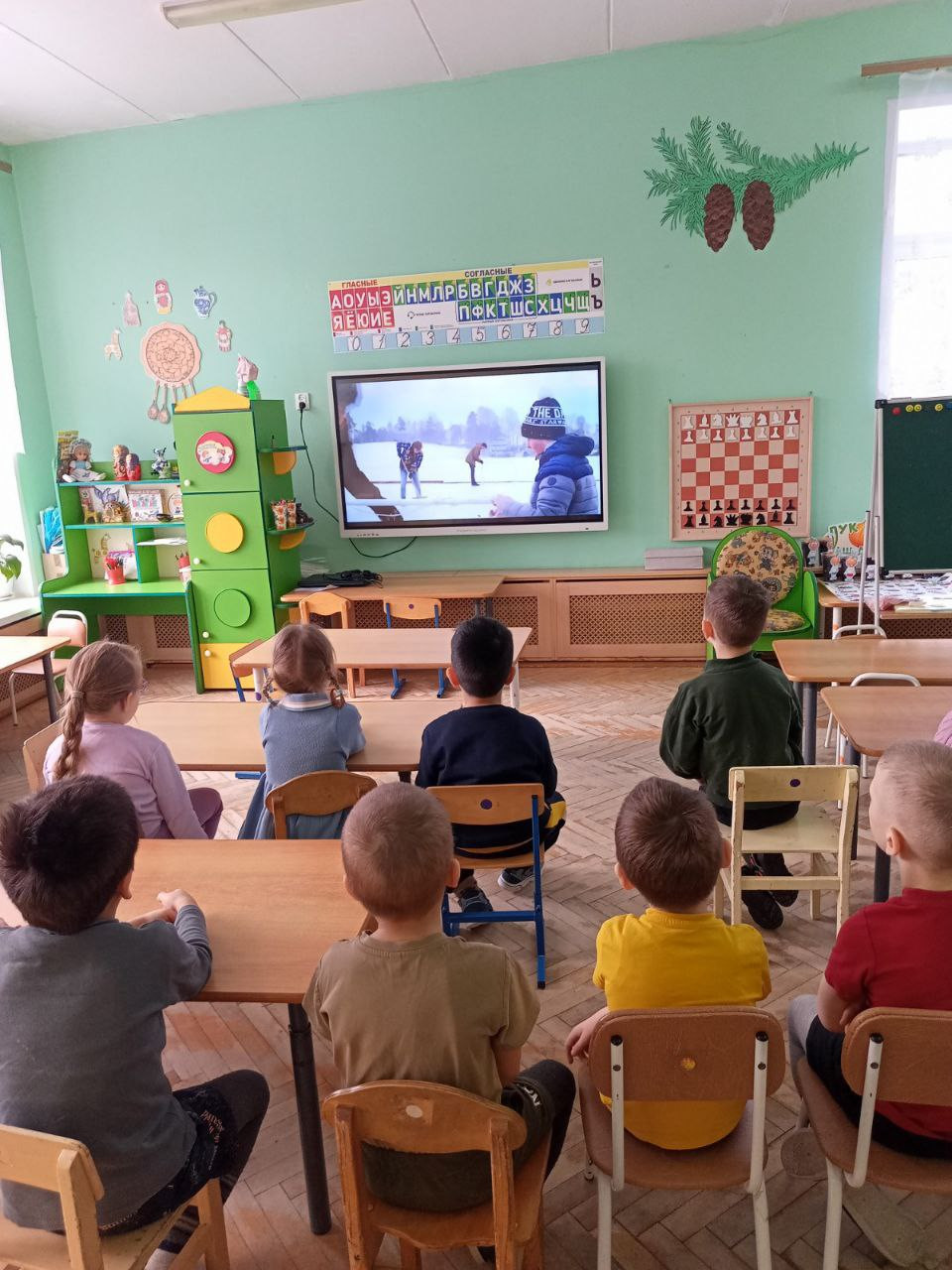 В рамках системы воспитания созидательных качеств «Киноуроки в школах России» проекта «О будущем» со старшими дошкольниками был проведен киноурок «Шайба».