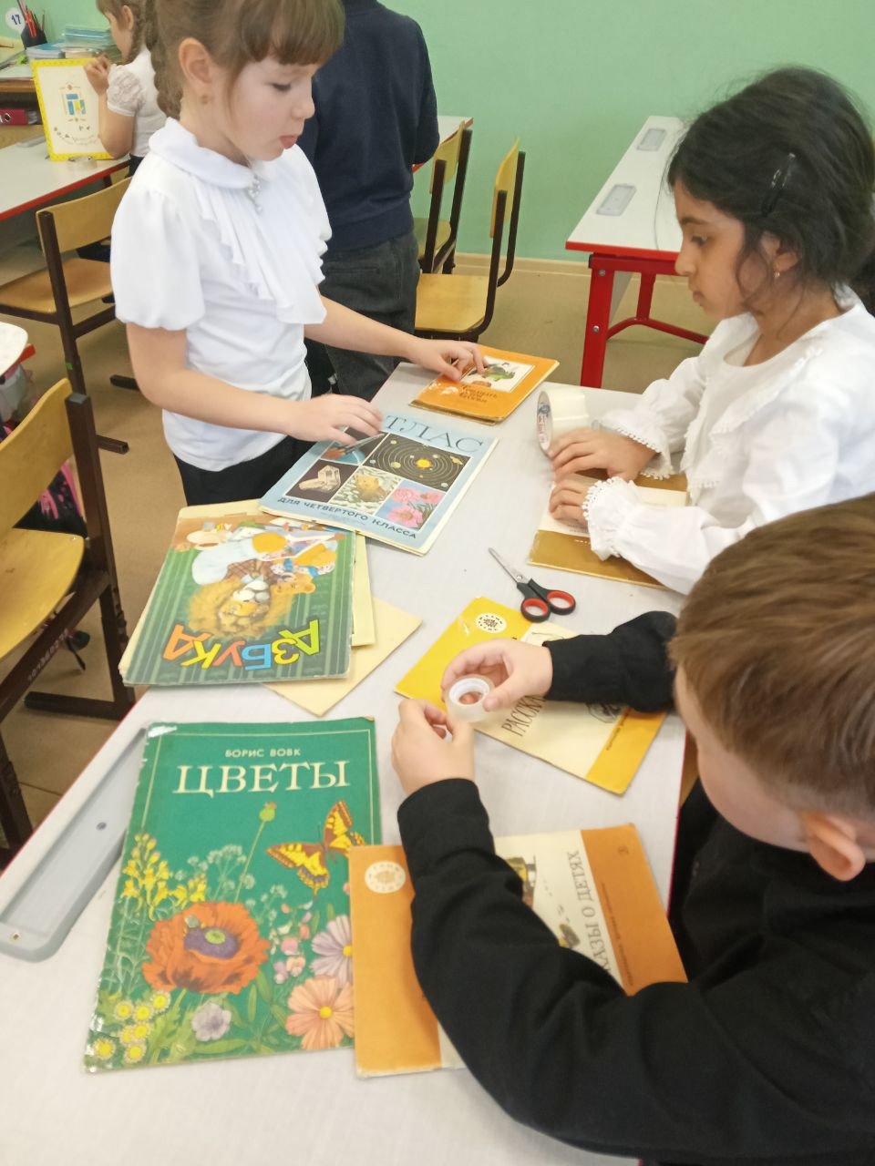 После просмотра фильма ребята предложили сделать поделки из футляров от киндер- сюрпризов, а потом возникла ещё одна идея - «вылечить» книги в классной библиотеке.